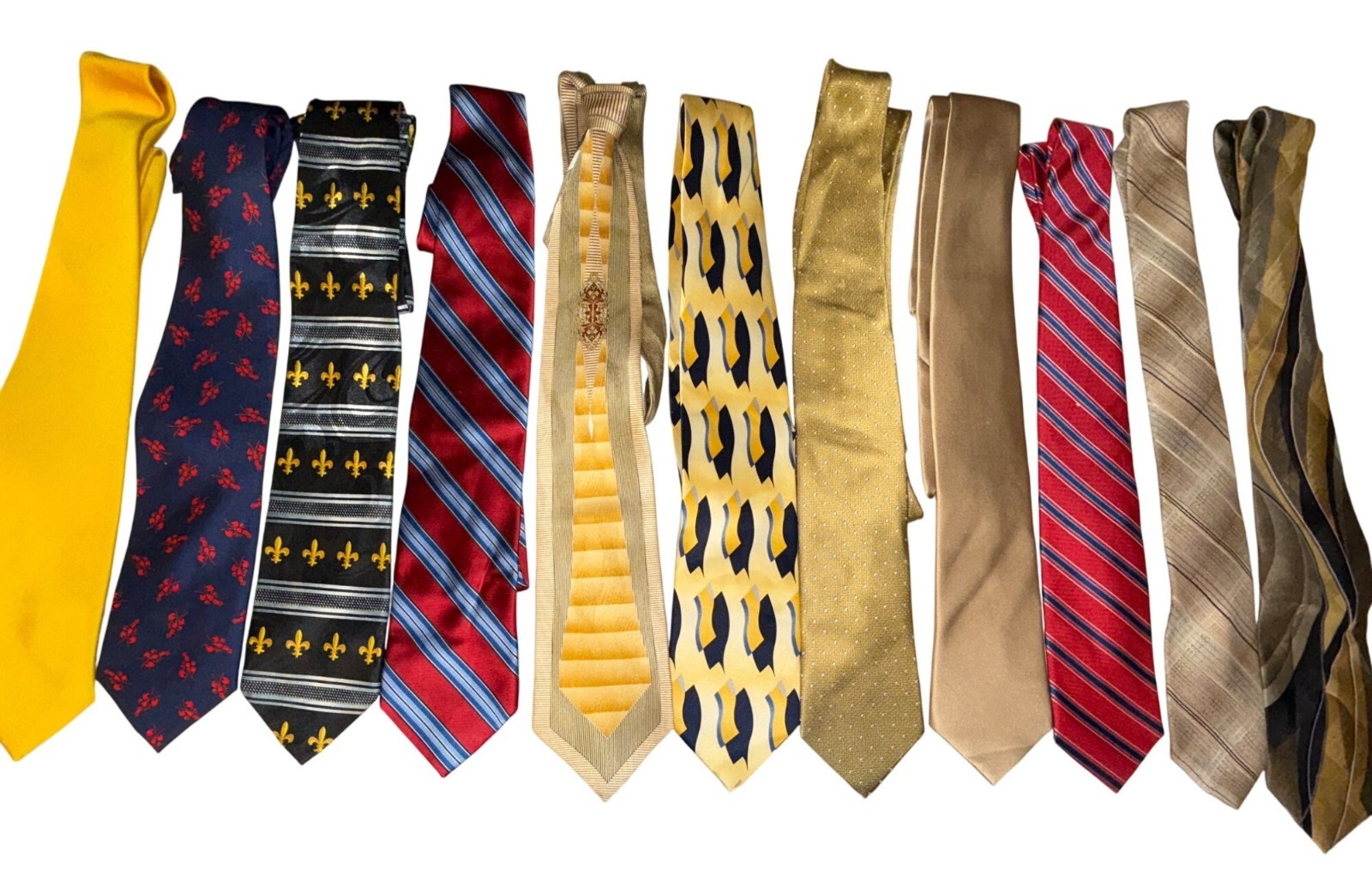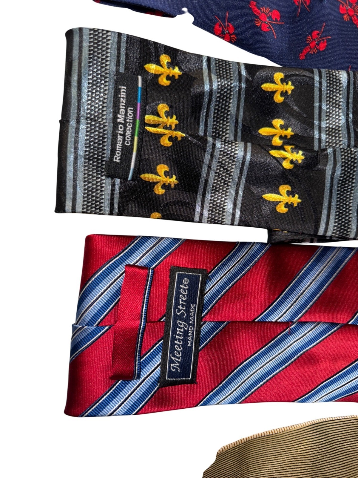 Lot 12 Variety Mens Silk Ties Mix Colors Patterns & Brands Crawfish Fleur De Lis