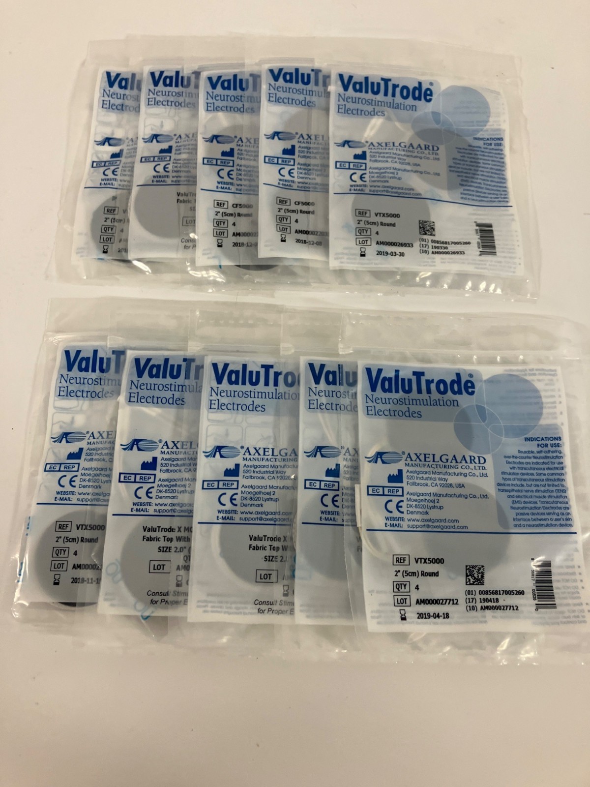 Lot of 10 Packs (4 per pack) ValuTrode Electrodes 2" Round