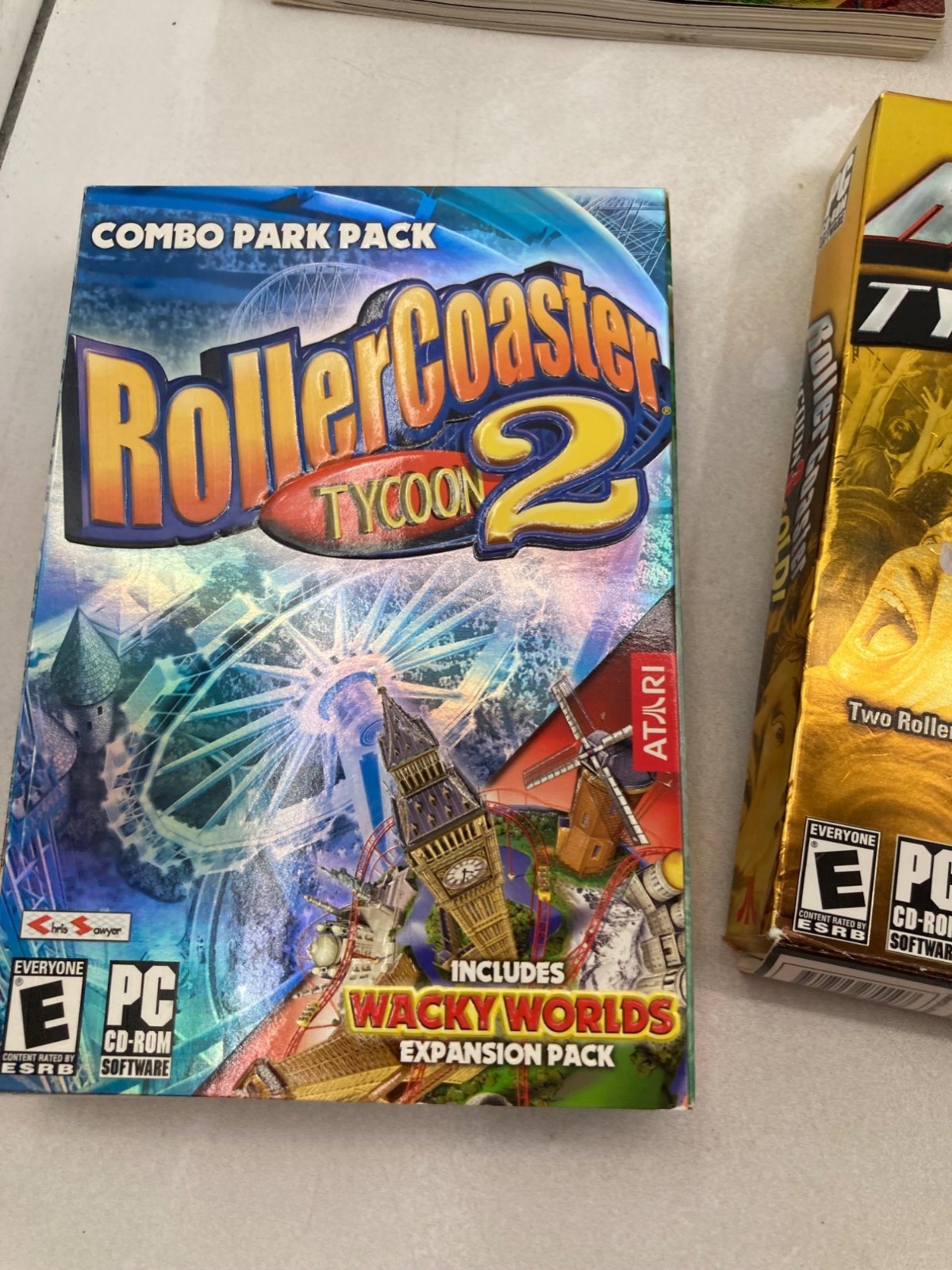Lot Of 10 PC Games RollerCoaster Tycoon 2 & 3 The Sims Deluxe Solitaire & More