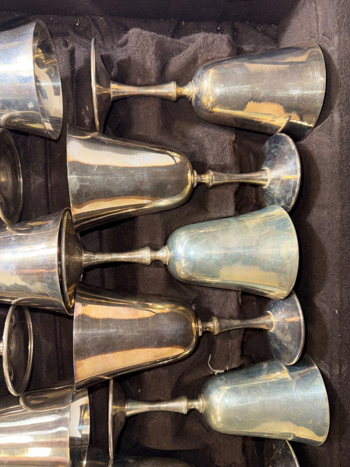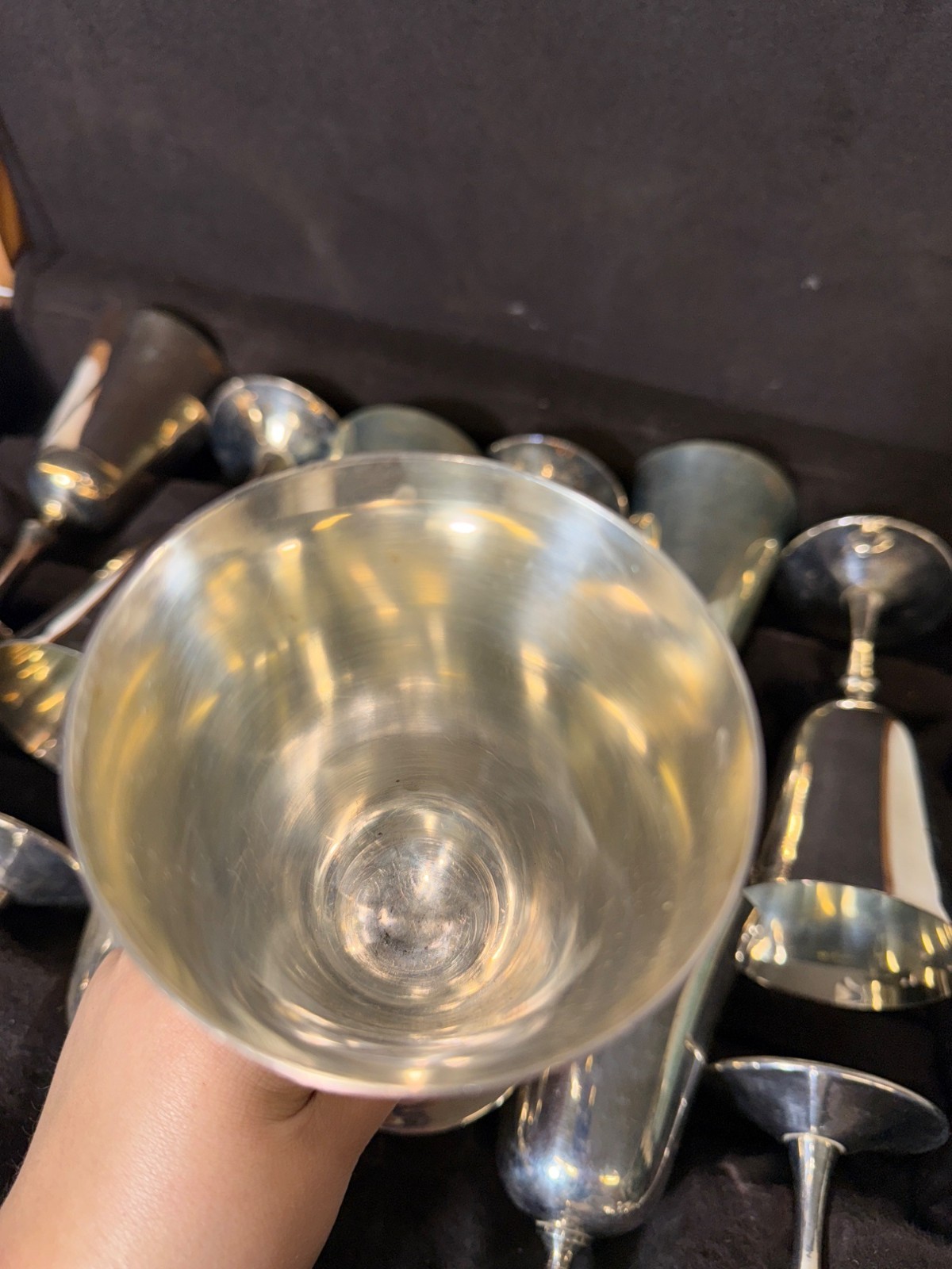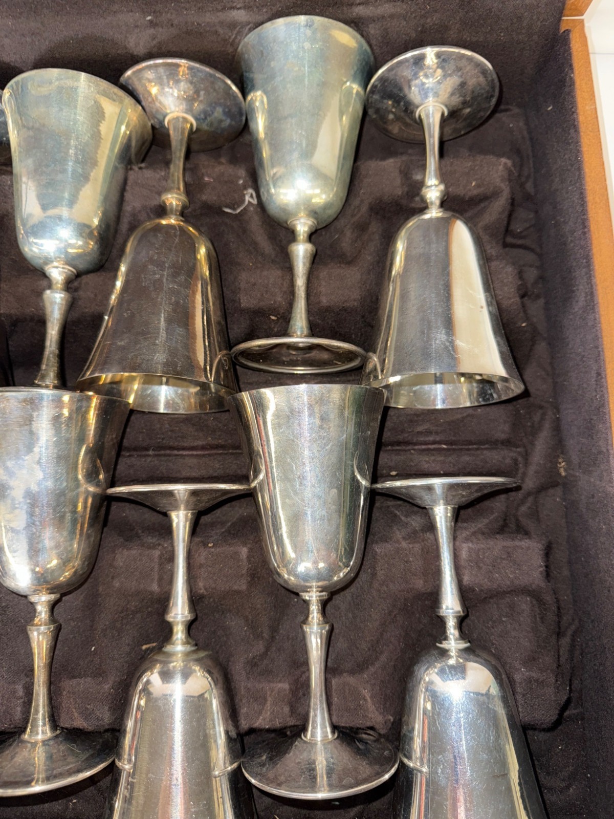 Lot Of 12 E&L El De Uberti Italy Silver-Plated Goblets 6.5'' In Wood Box