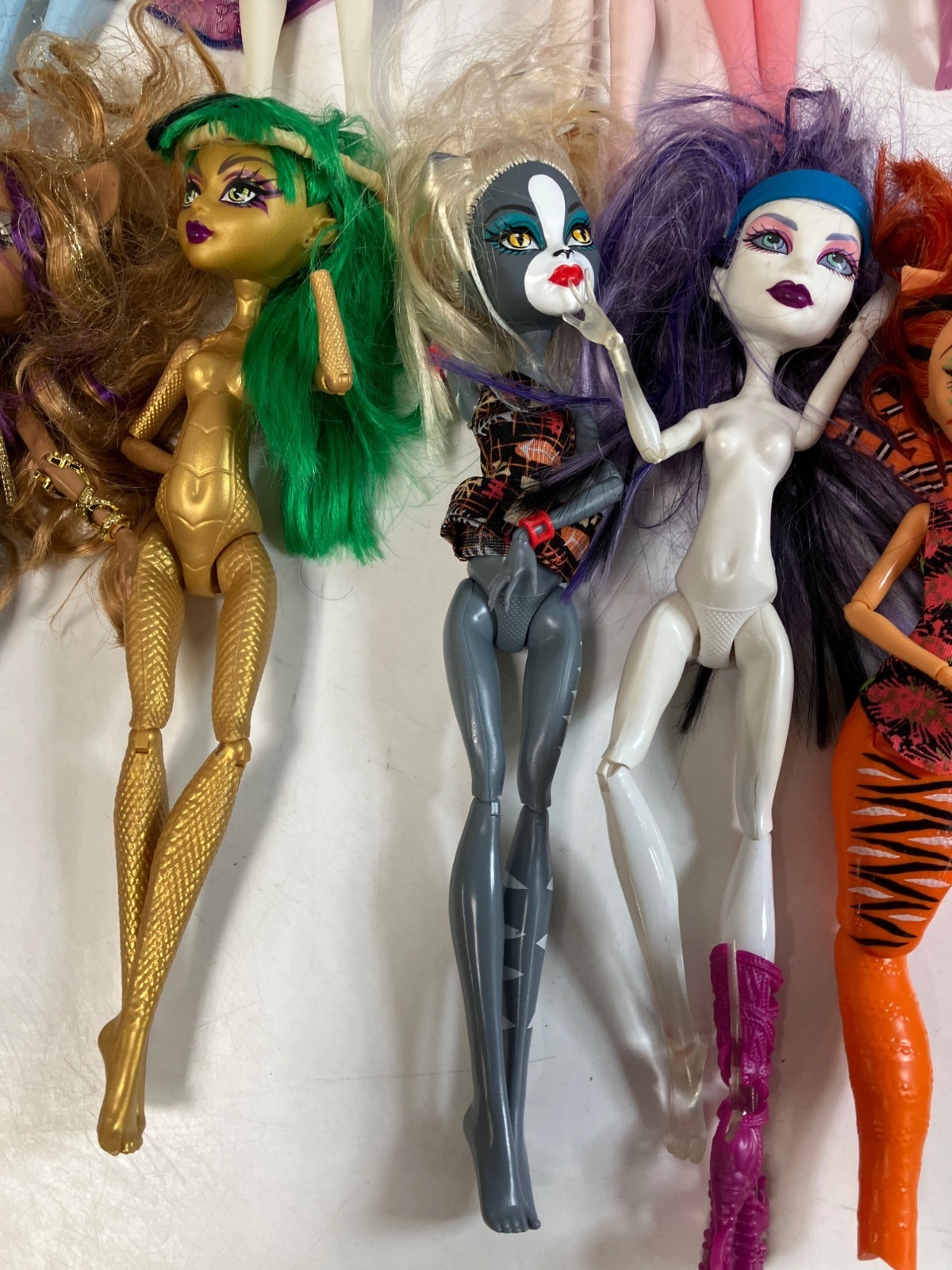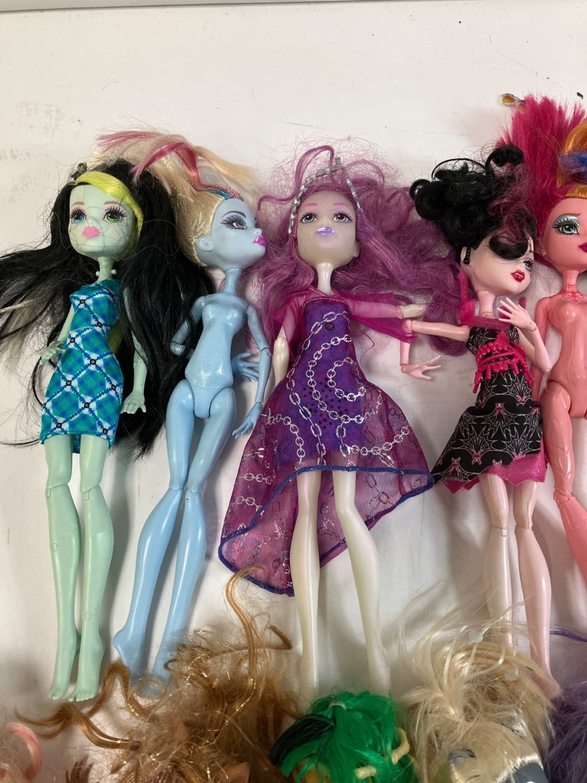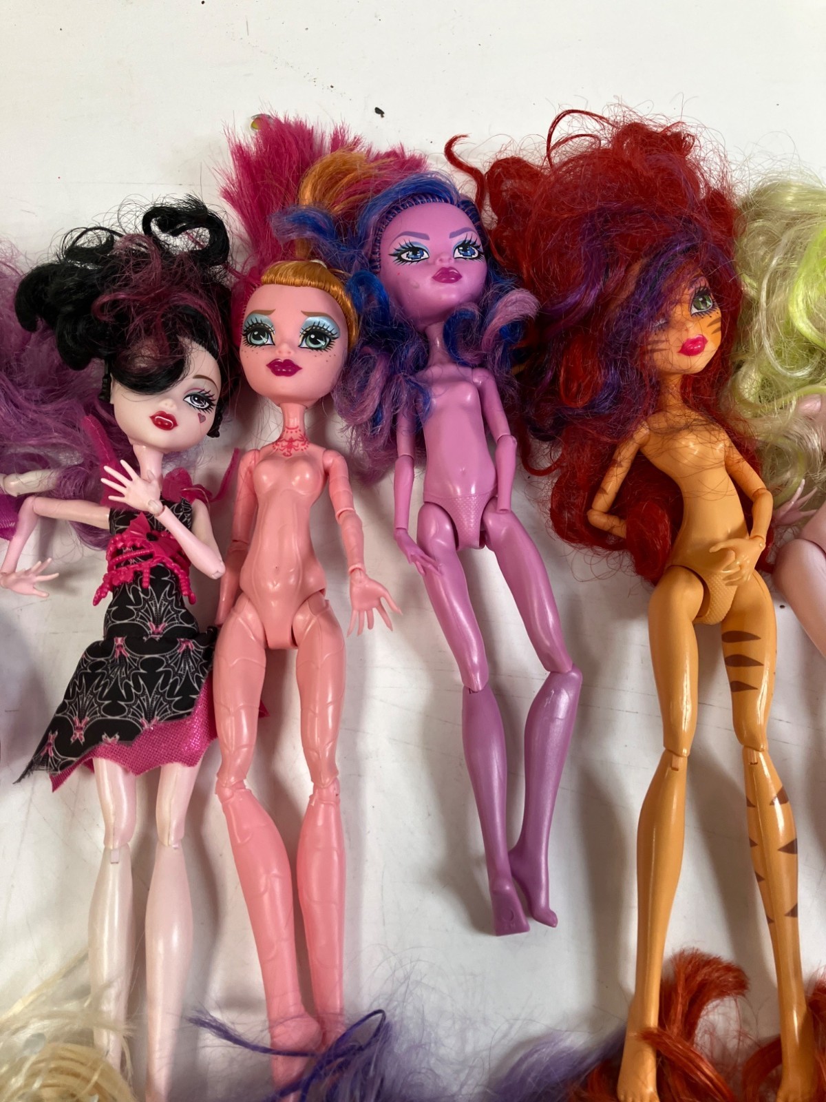 Lot of 17 Monster High, Mattel Dolls Incomplete Dolls Needs TLC As-Is