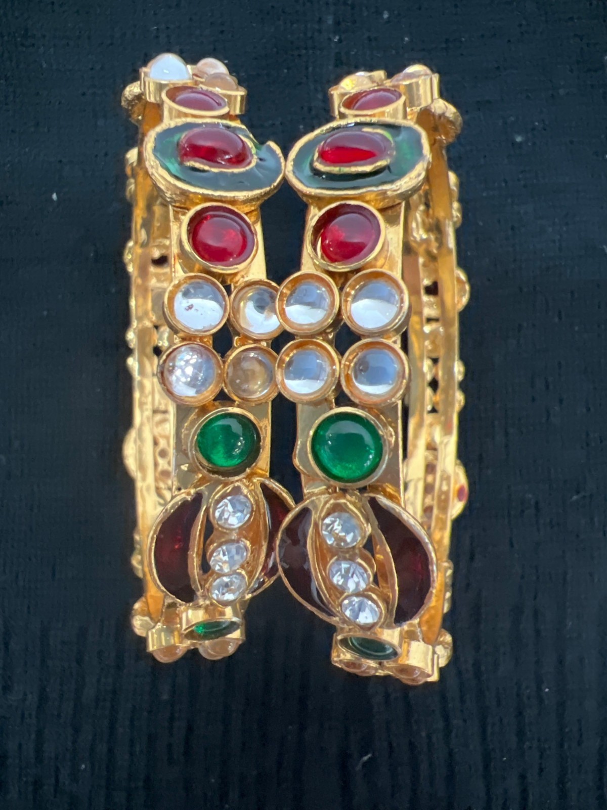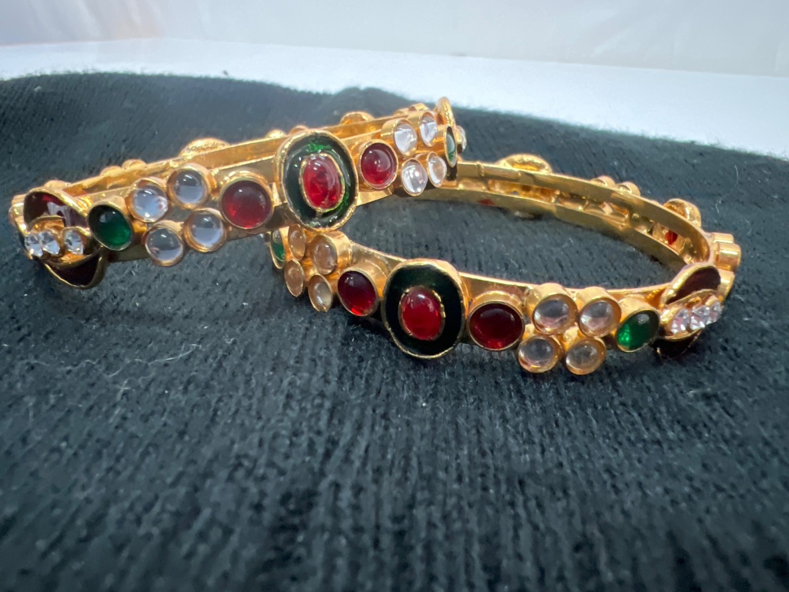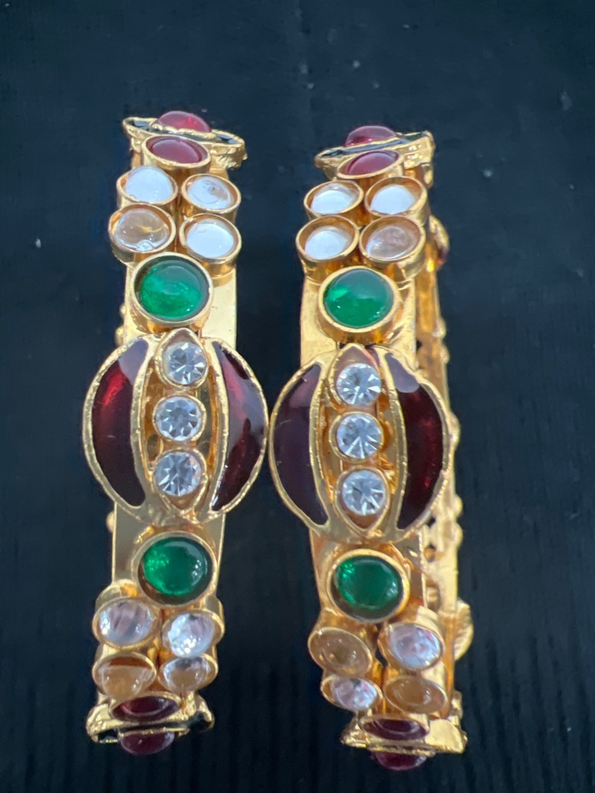 Lot of 2 Gold-Tone Red Green & White Holiday Bangle Bracelets 7.5" (NEW)