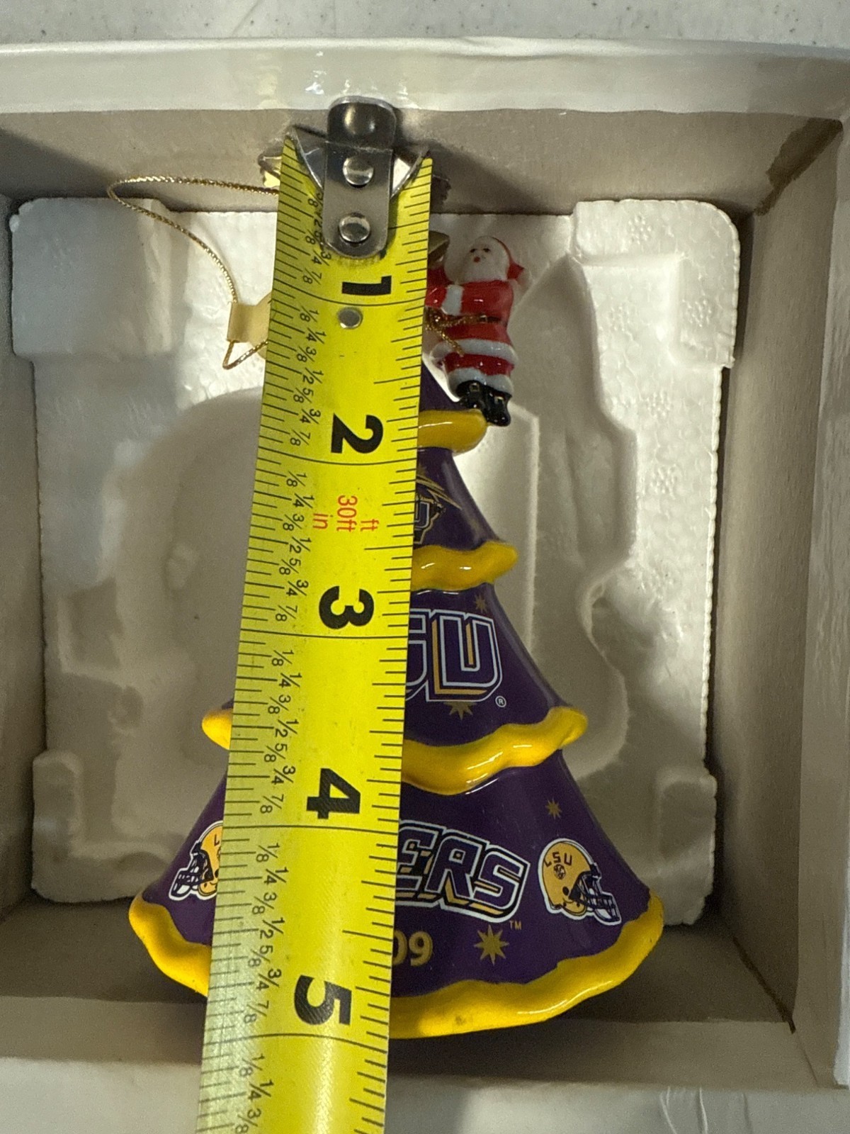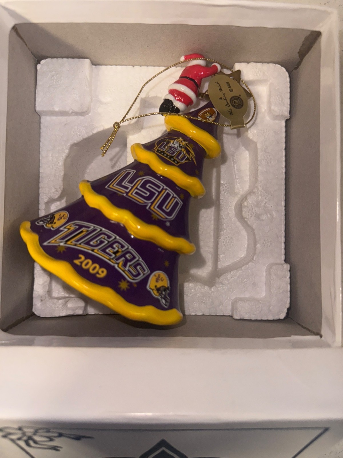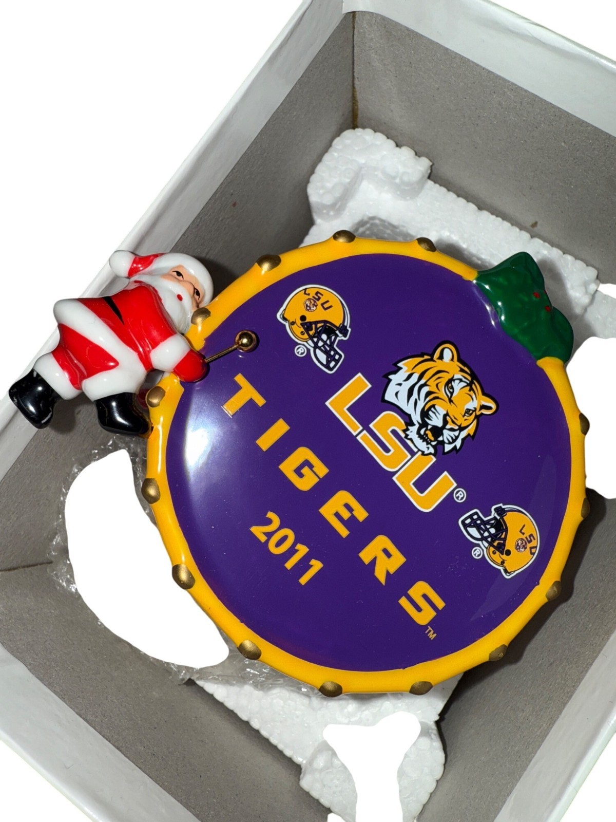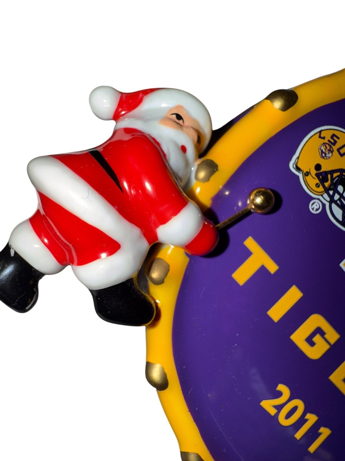 Lot Of 2 LSU Tigers Christmas Ornament 2009 & 2011 Ceramic Santa & Tree