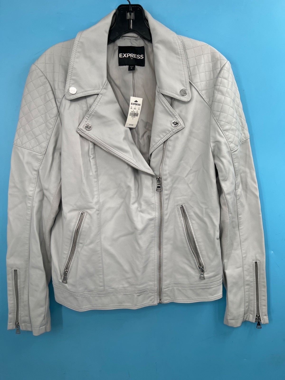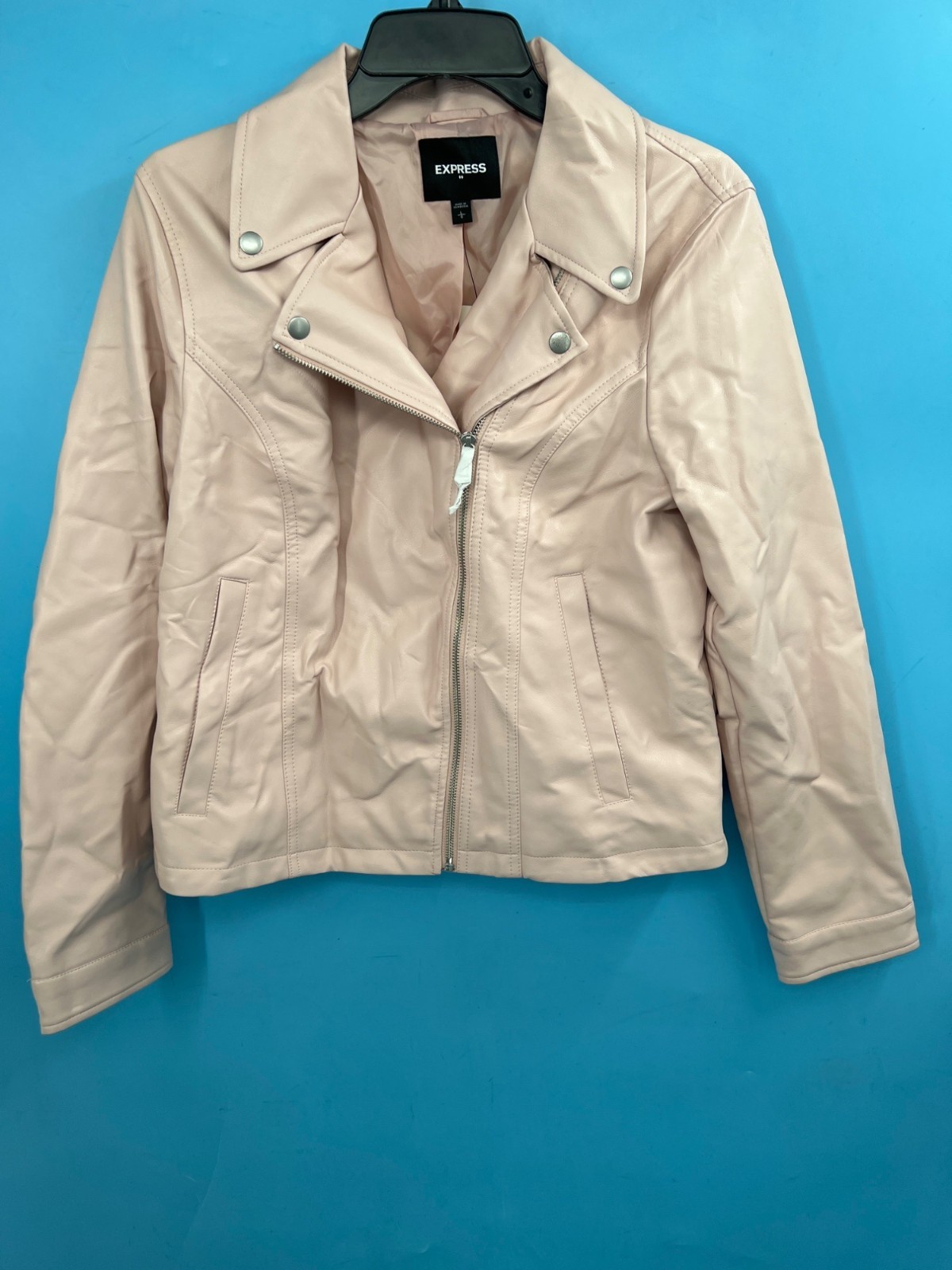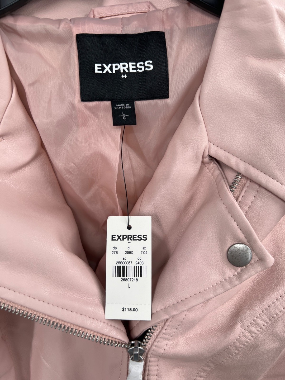 Lot of 2 Wmn's EXPRESS Faux Leather Biker Jackets Pink & Grey Size L (New w/Tag)