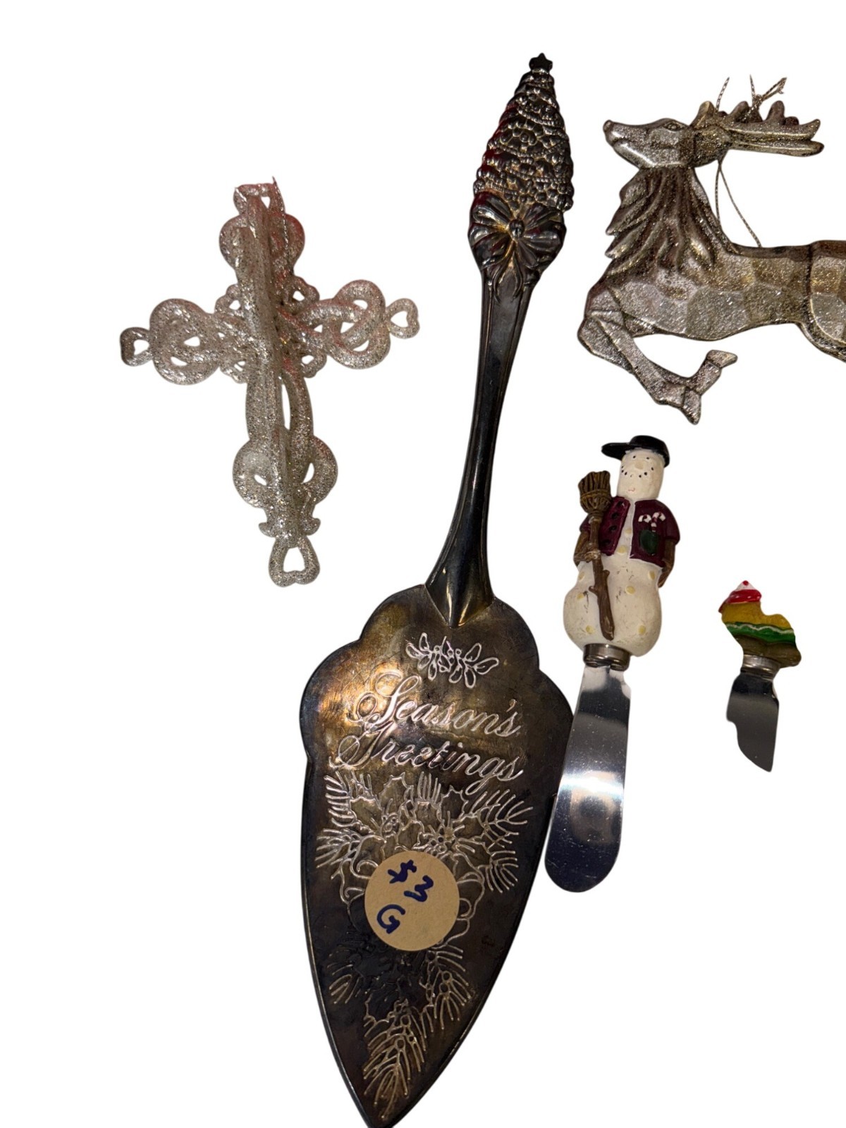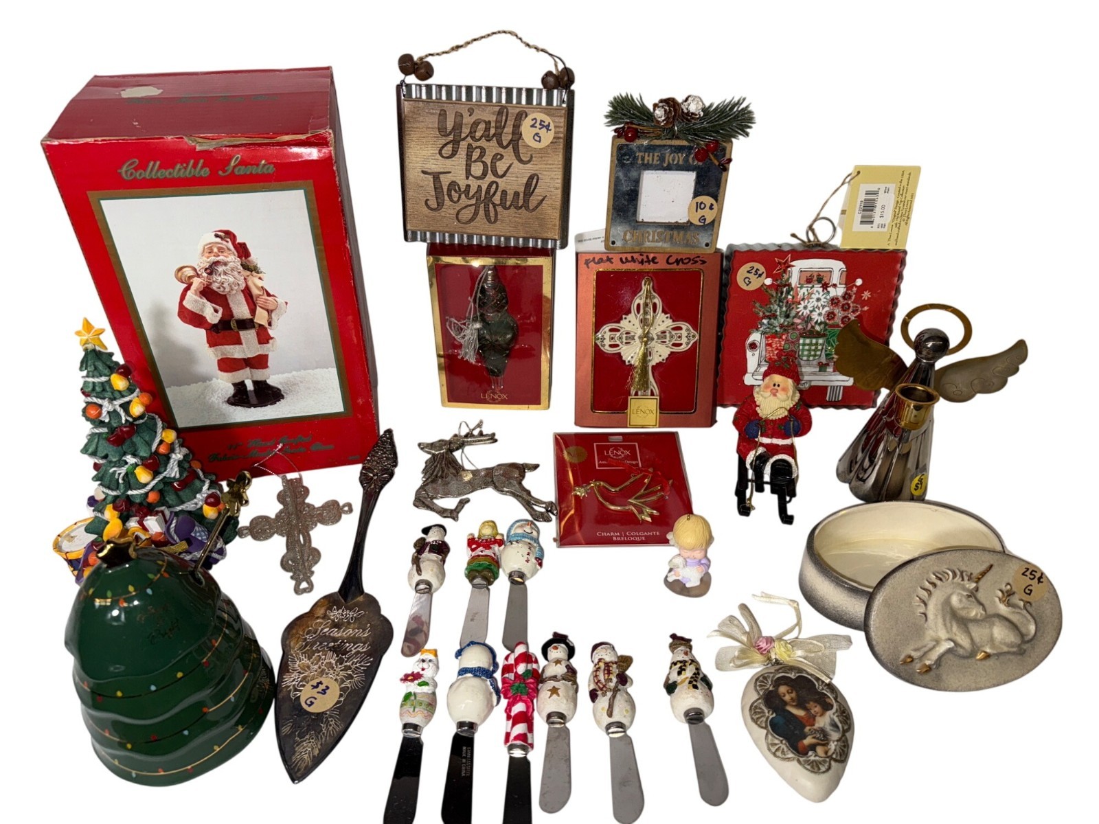 Lot of 20+ Holiday Collectible Christmas Decos: Tree Figurines Santa Utensils