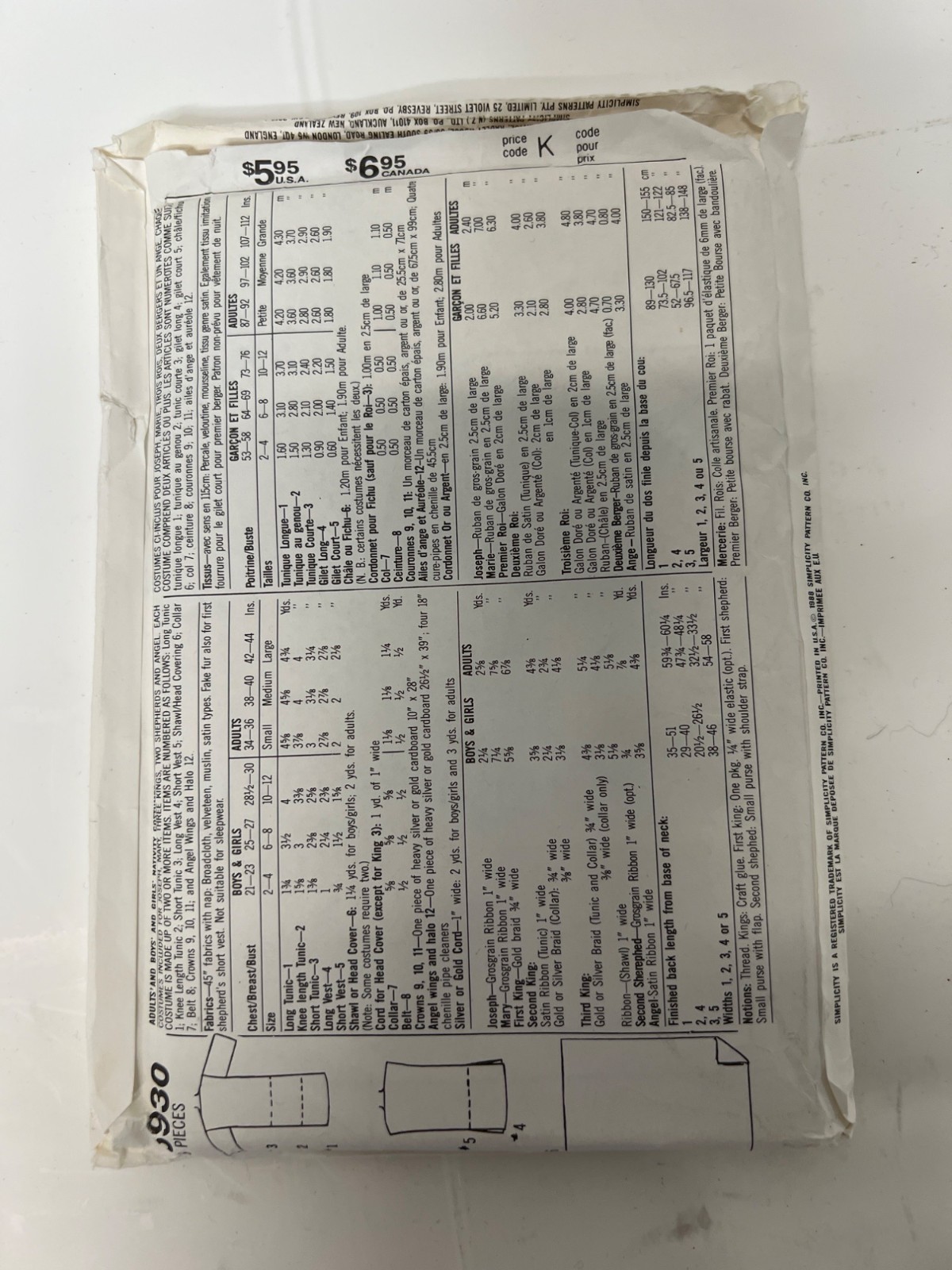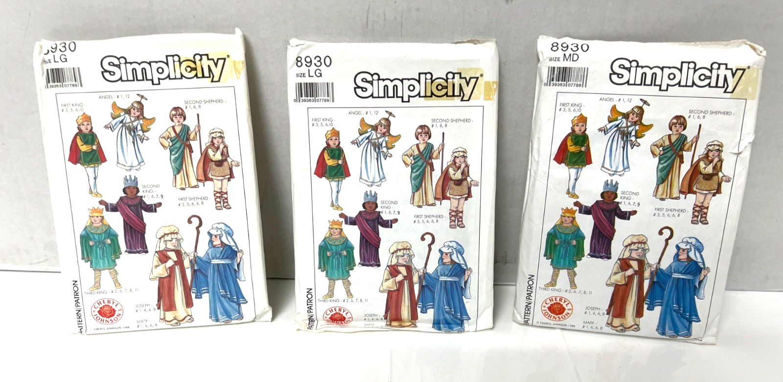 Lot of 3 Nativity Christmas Costume Sewing Patterns Sizes Med and (2) Large