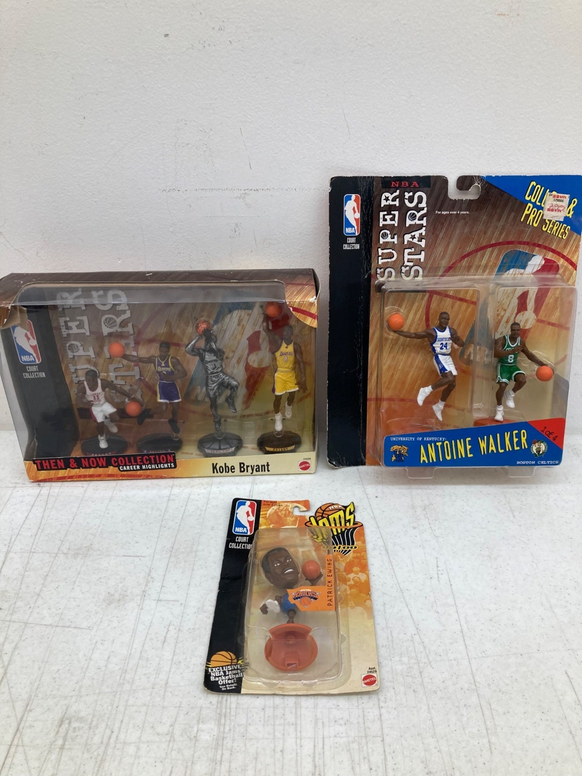 Lot of 3 NBA Court Collection Figures Kobe Bryant, Antoine Walker, Patrick Ewing