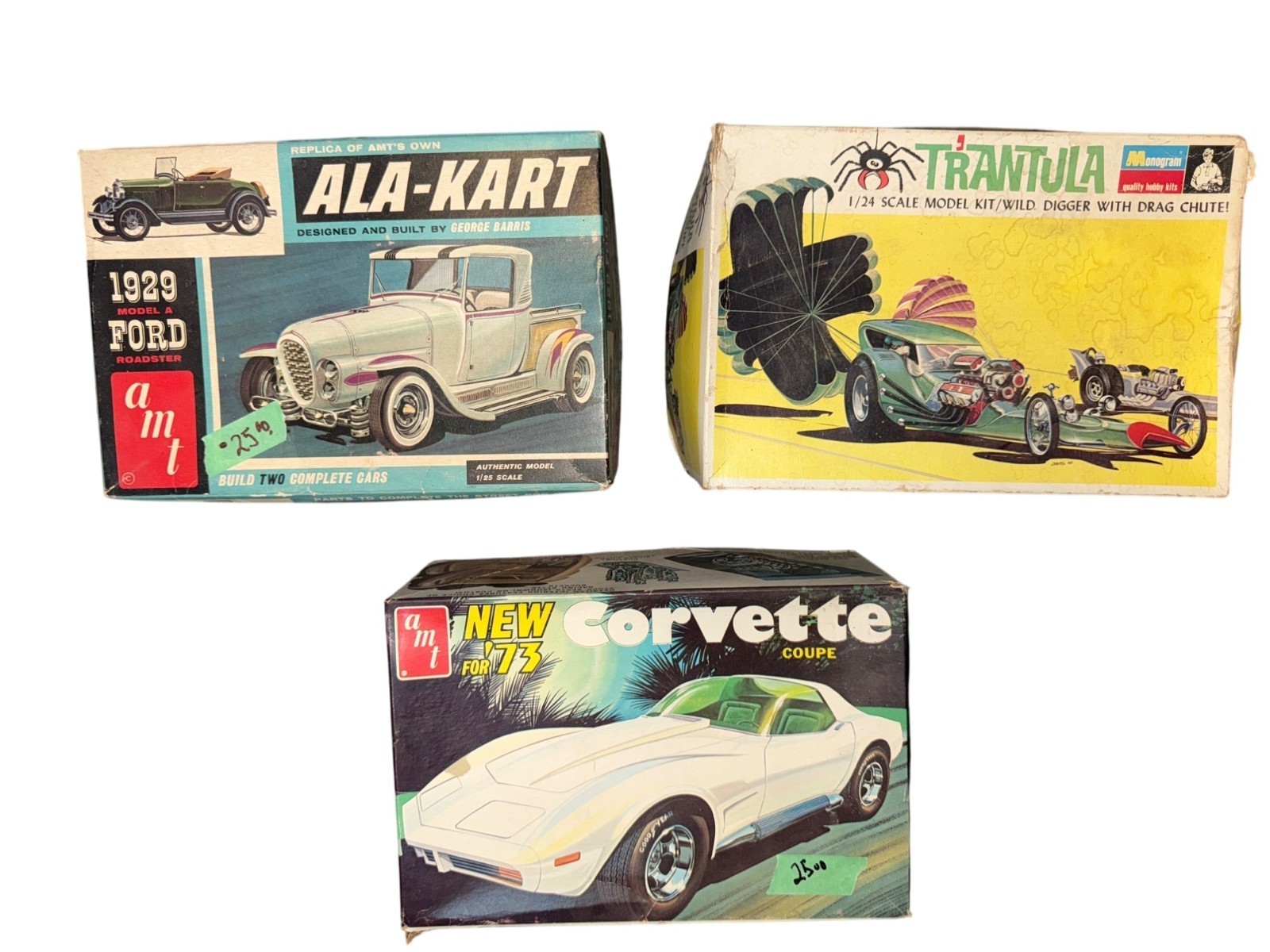 Lot Of 3 Vintage AMT Model Car Kits: 1973 Corvette Ala-Kart & Trantula Set