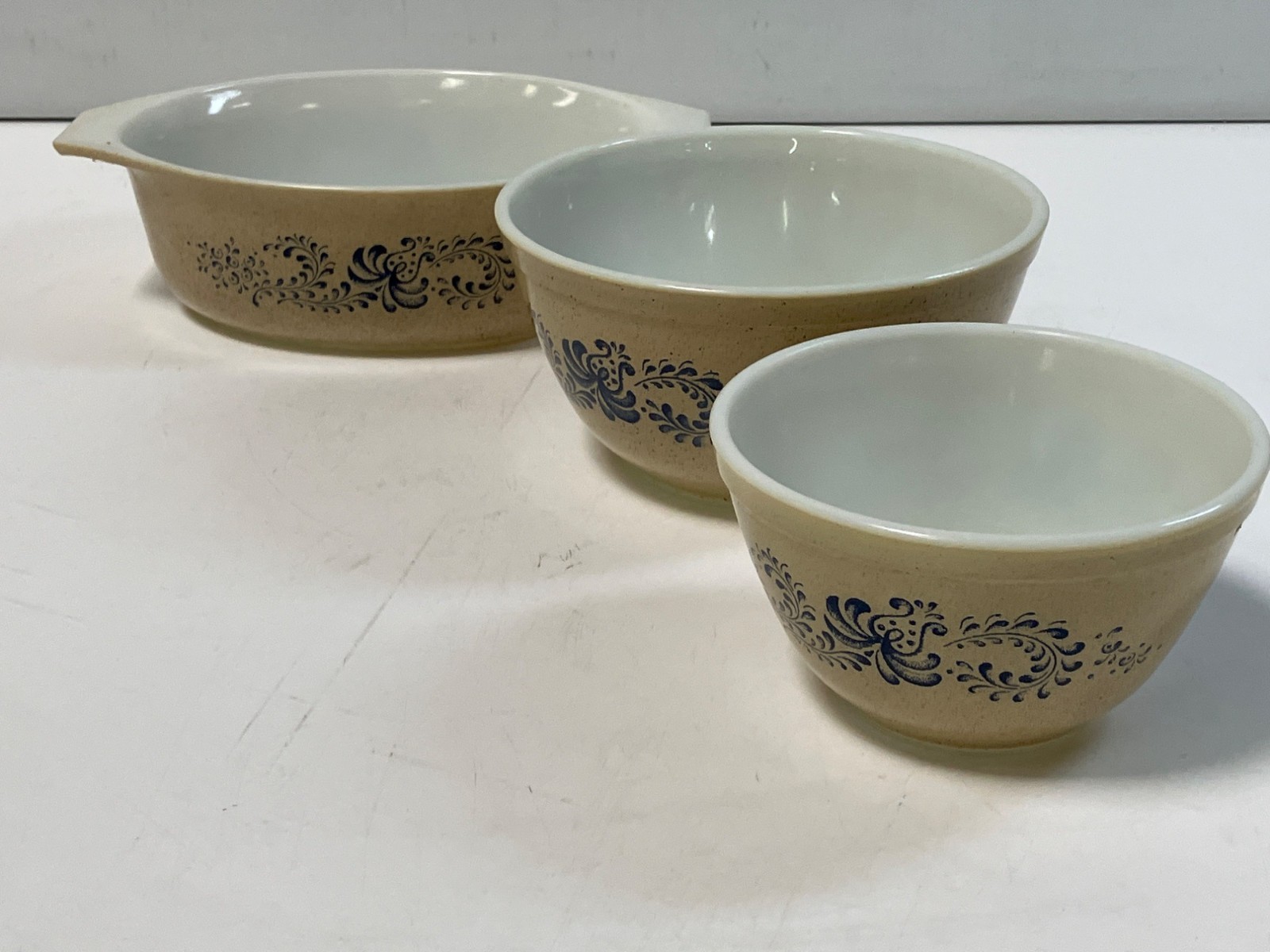 Lot of 3 Vintage Pyrex Dishes Glass 2 Mixing Bowls 401 &402 , 1.5 qt Dish Homest