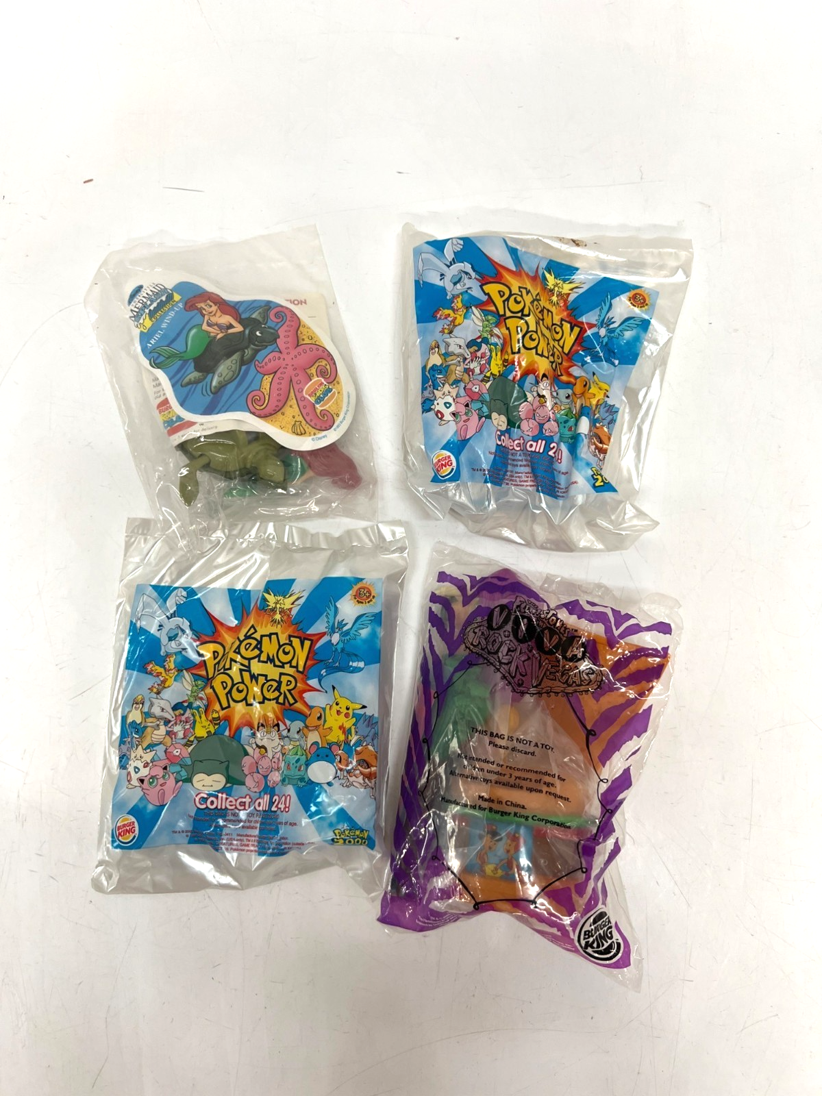 Lot of 4 Sealed BURGER KING Toys: Pokemon Power Flintstones & Ariel