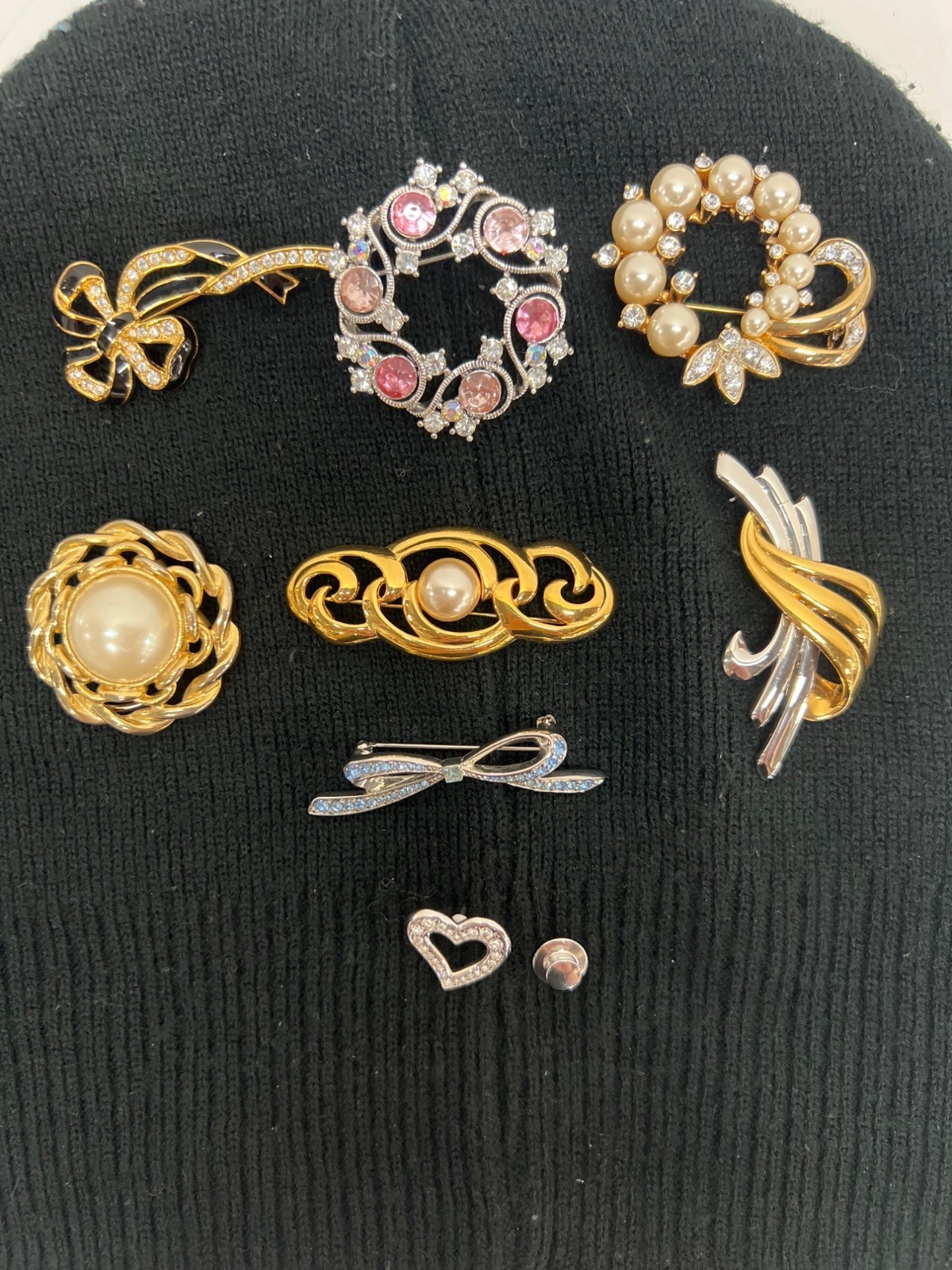 Lot of 8 Gold-Tone & Silver-Tone Brooch Pins -Some Jeweled-