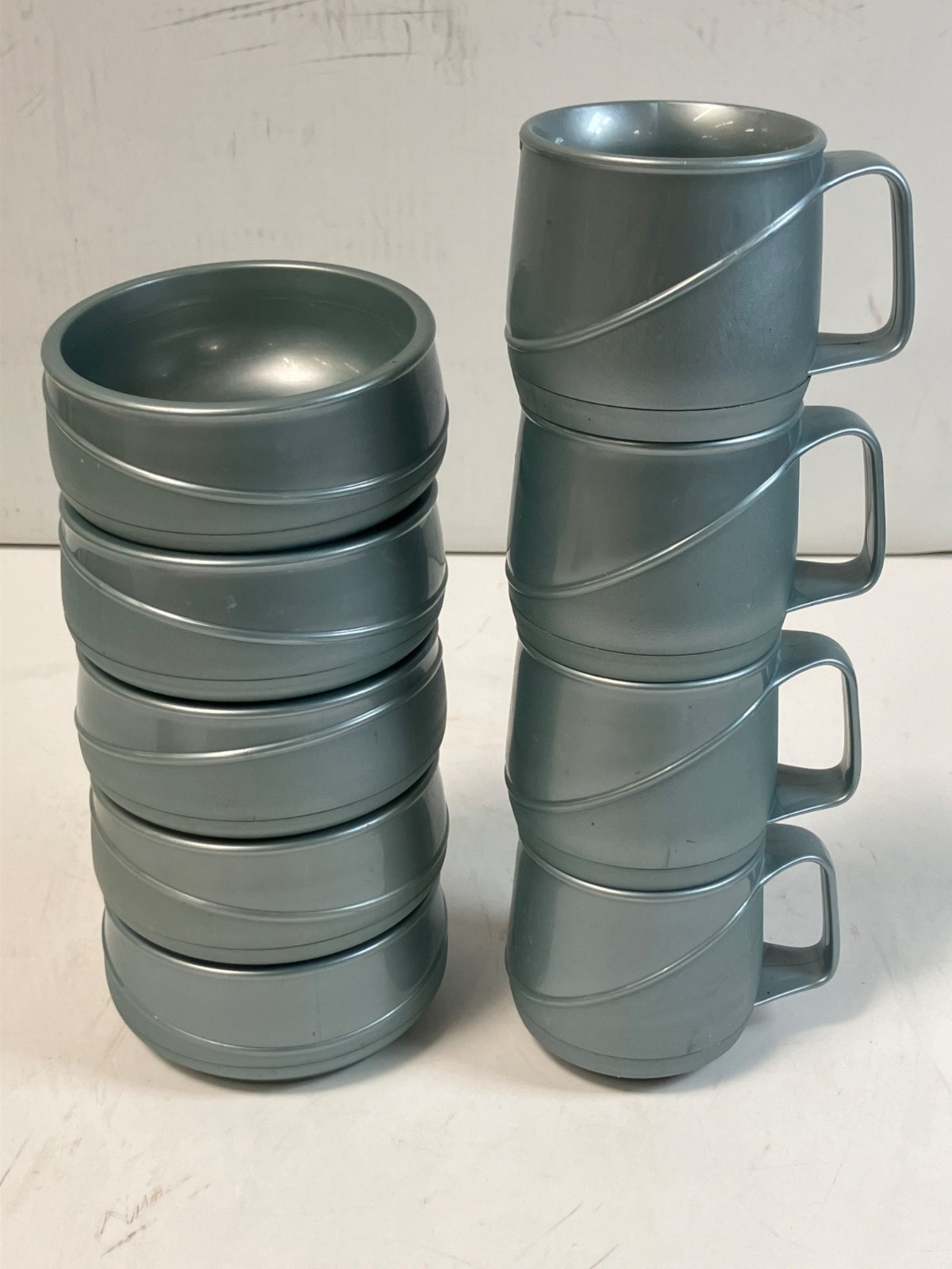 Lot of Aladdin Temp Rite Plastic 4 Mugs and 5 Bowls Allure Reusable Insulated