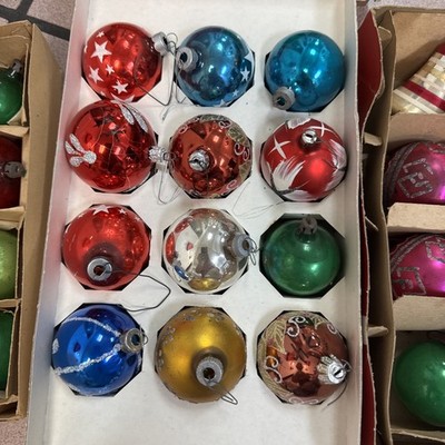 Lot of Vintage Glass Christmas Ball Ornaments 48 /4 Boxes