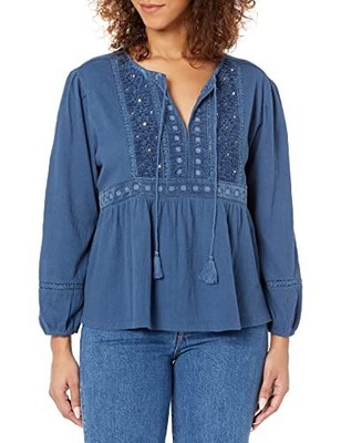 Lucky Brand Women's Long Sleeve Velvet Yoke Top - Choose SZ/color
