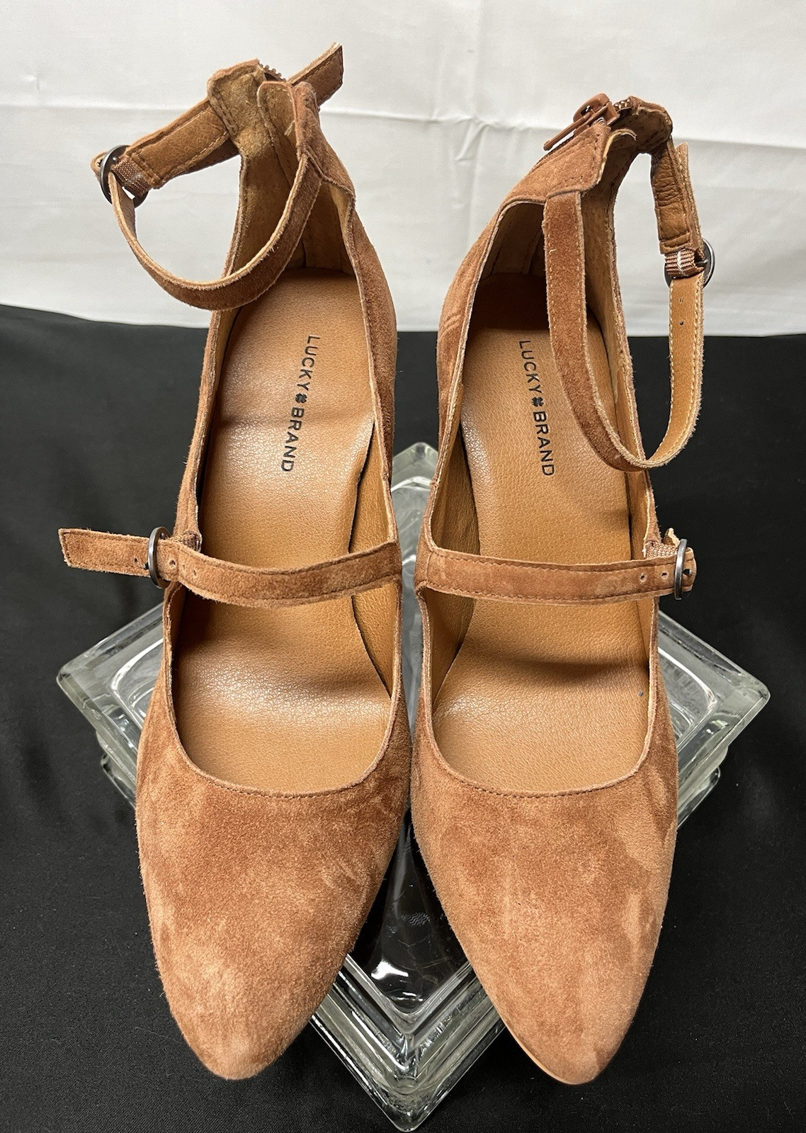 Lucky Brand Womens Mary Jane suede Heel Size 10 Tan Suede Heels