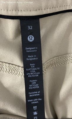 Lululemon Mens Tan Flat Front Pockets Straigth Leg Chino Pants Size 32