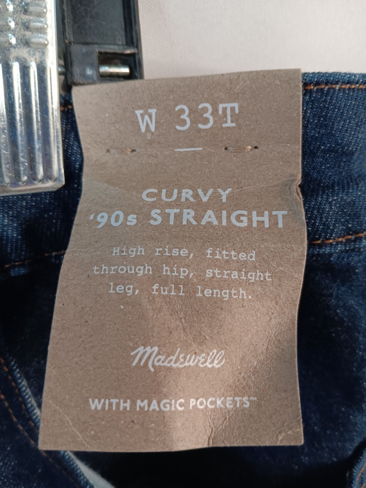 Madewell Womens Curvy 90s Straight Jeans W33T High Rise Denim Blue