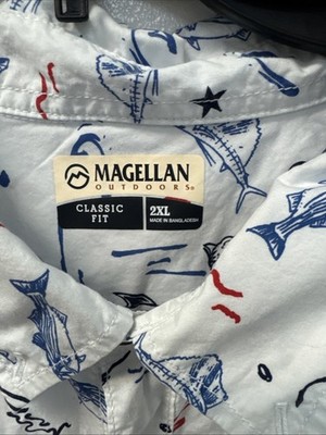 Magellan Outdoors Men's Shirt American Marlin 2XL Red White Blue