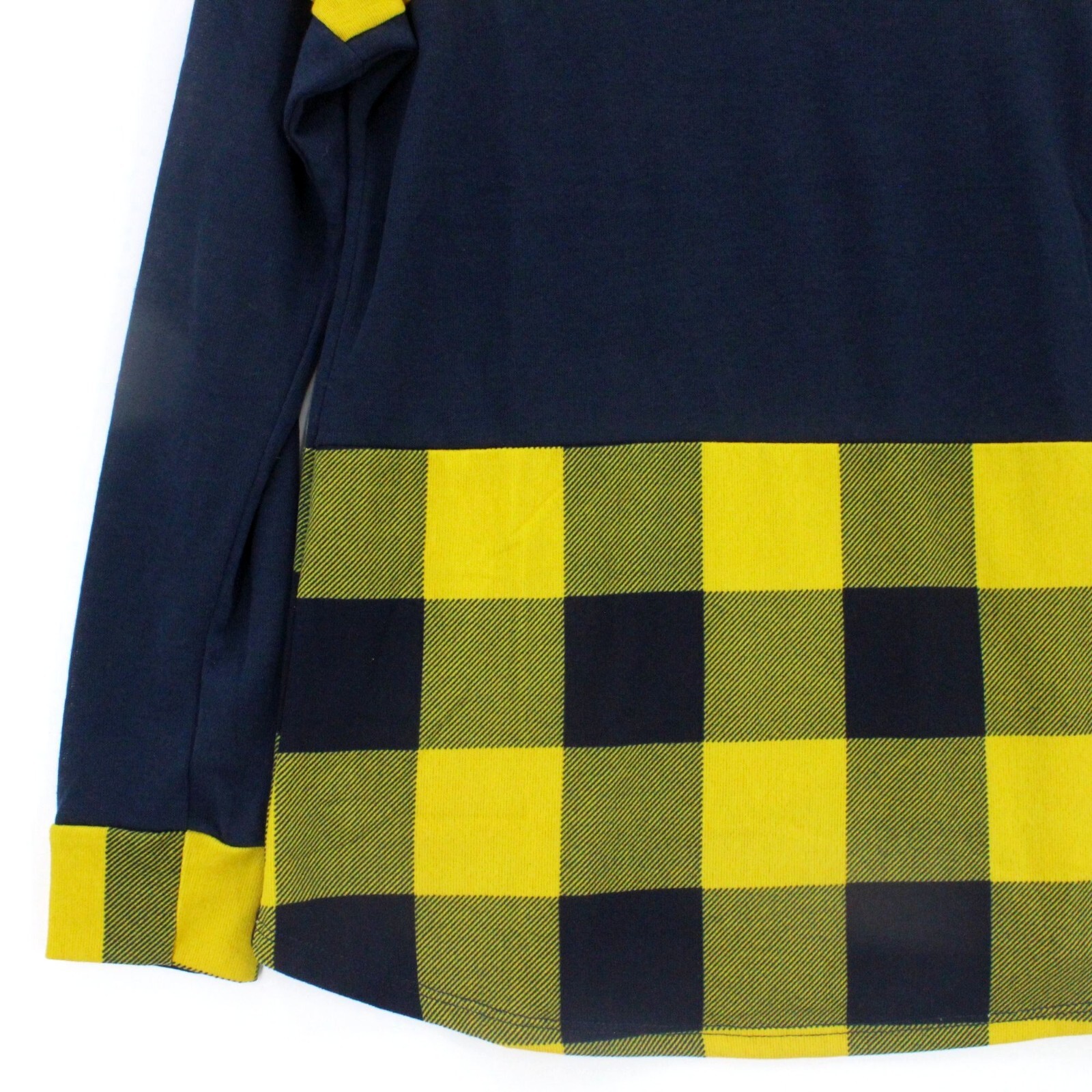Mai Soli Long Sleeve Top Blouse Women's Navy Blue & Yellow Pullover Plaid Sz XL