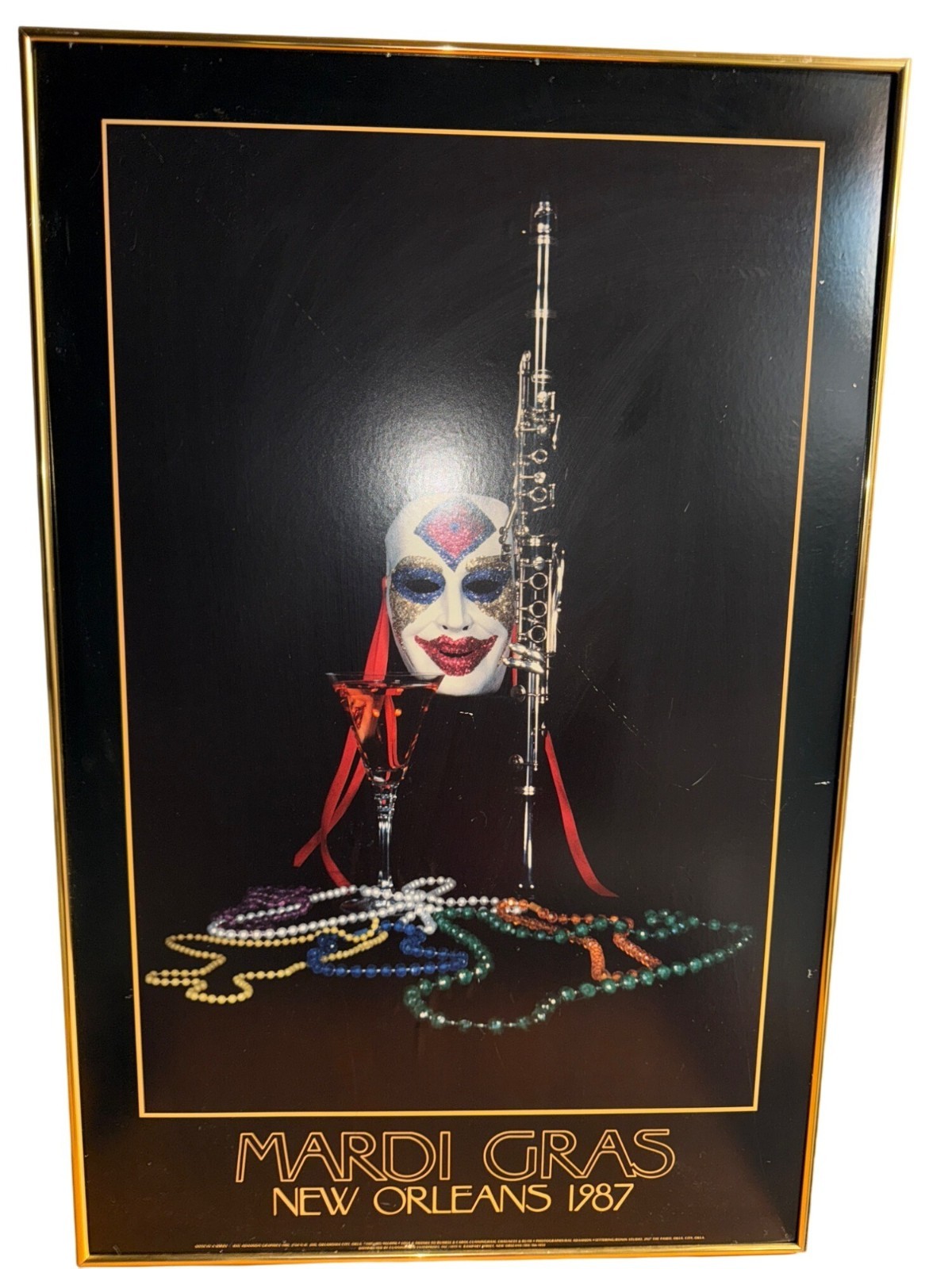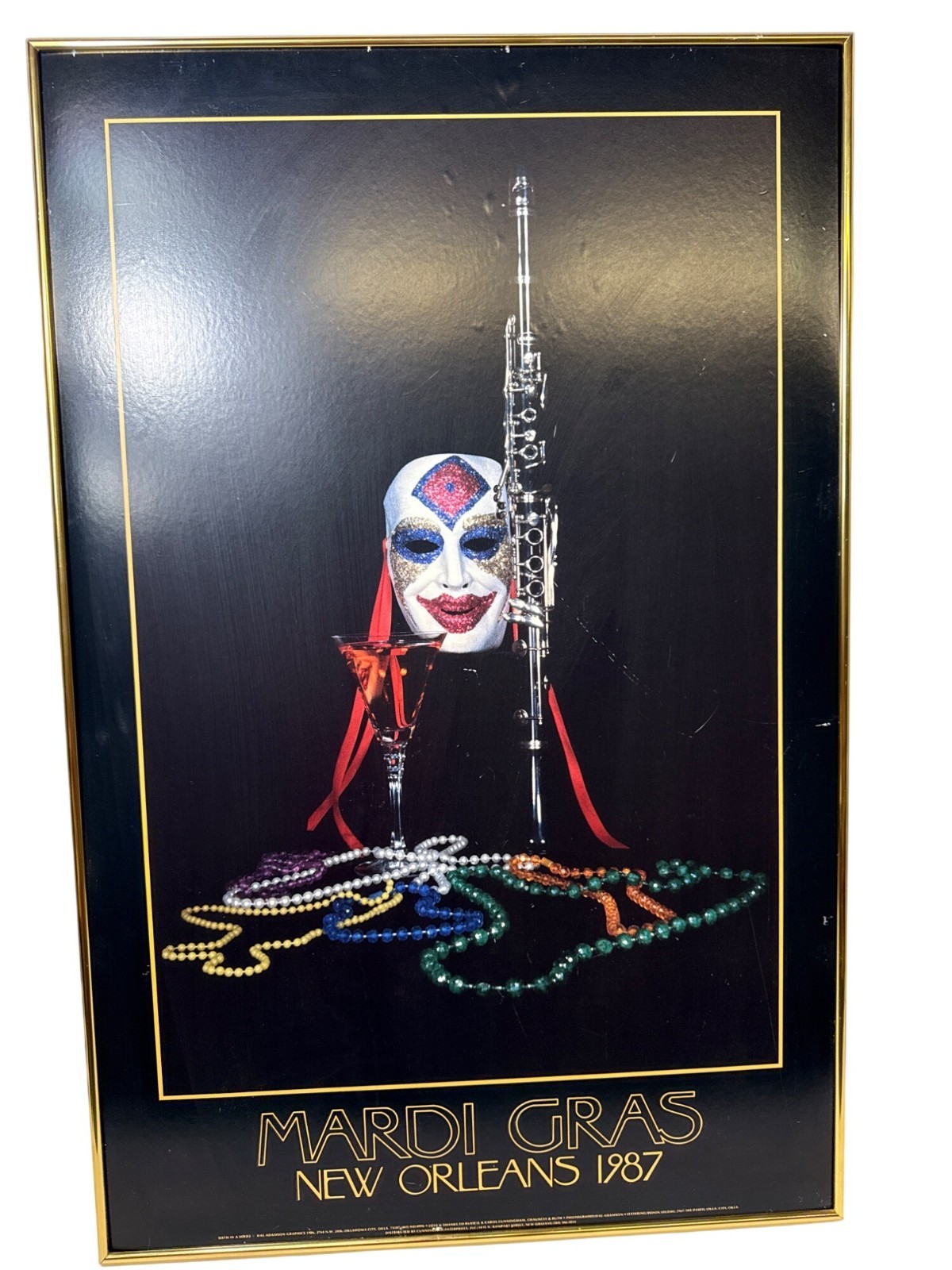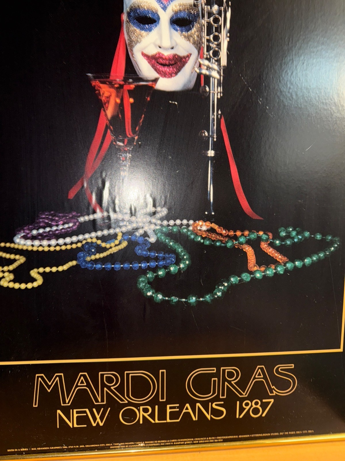 Mardi Gras New Orleans 1987 Framed Art Print With Mask Clarinet Beads & Martini