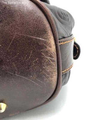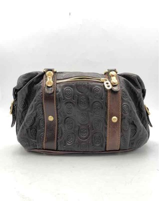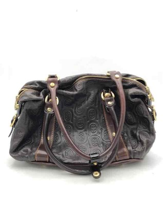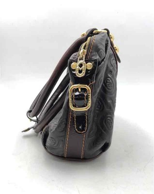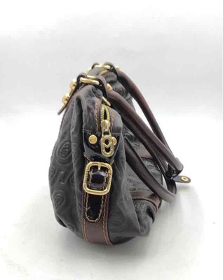 Marino Orlandi Womens Black Brown Embossed Monogram Zipper Shoulder Purse