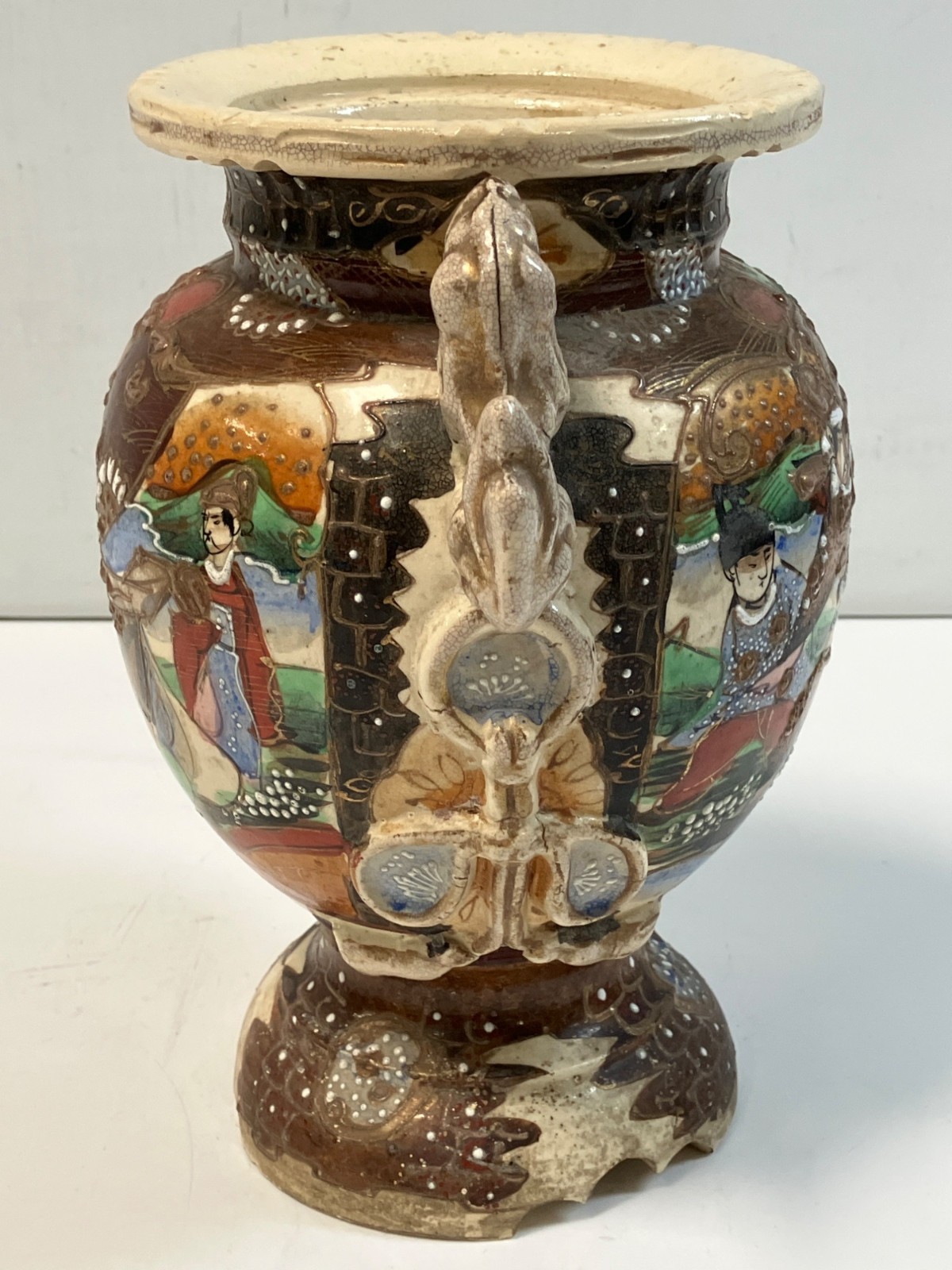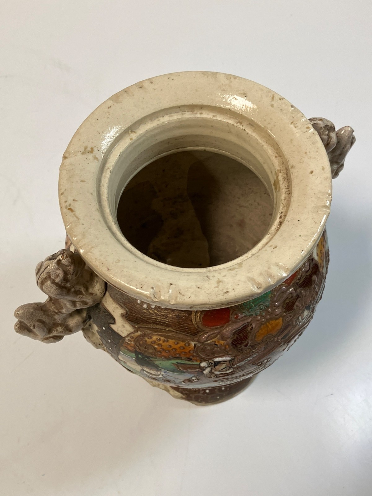 Meiji Period Japanese Satsuma Ceramic Vase - 10"