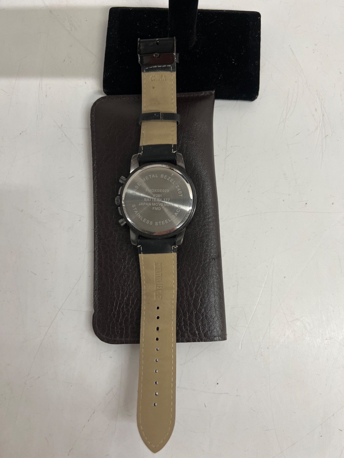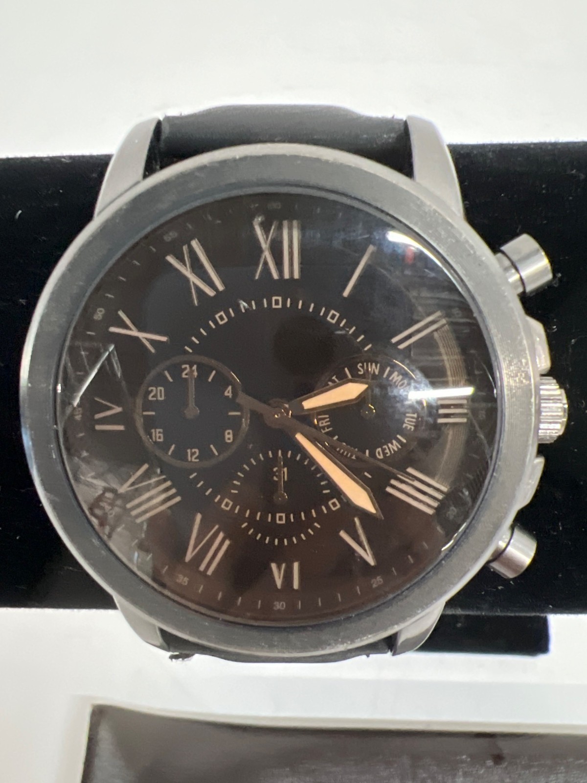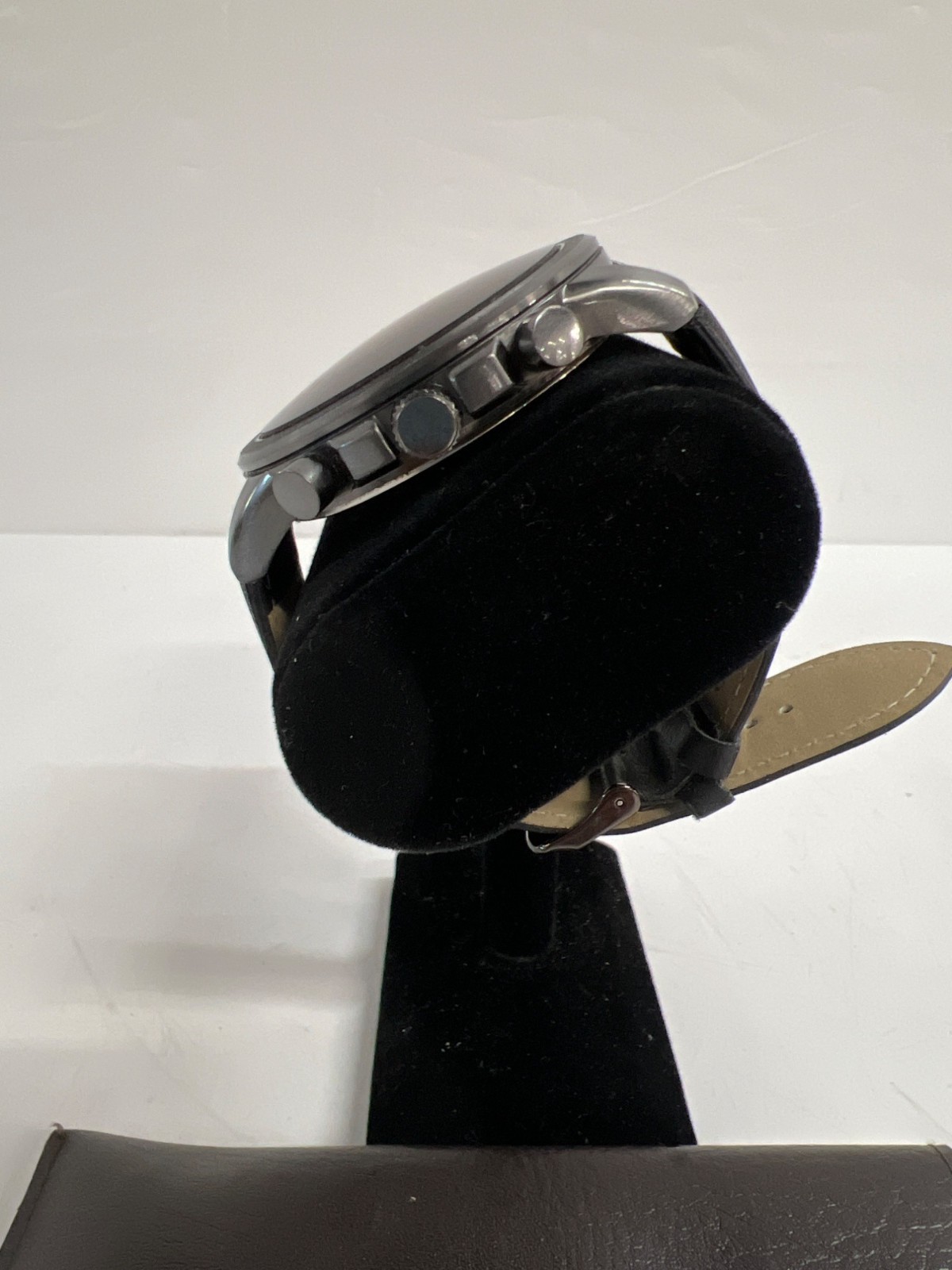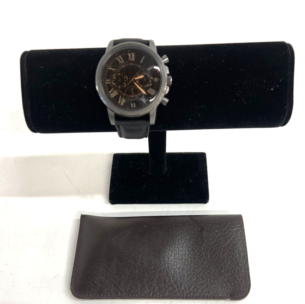 Men's Unbranded Black Chronograph Wristwatch w/ Faux Leather Band 10" (Working)