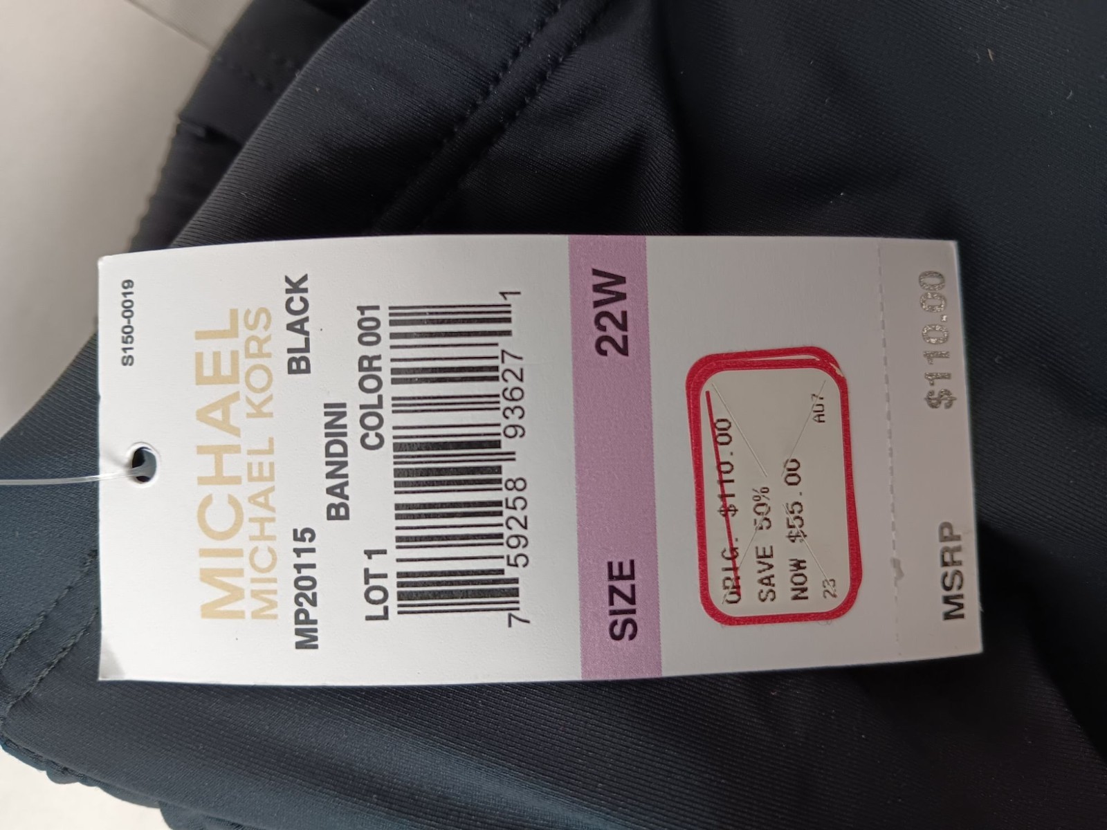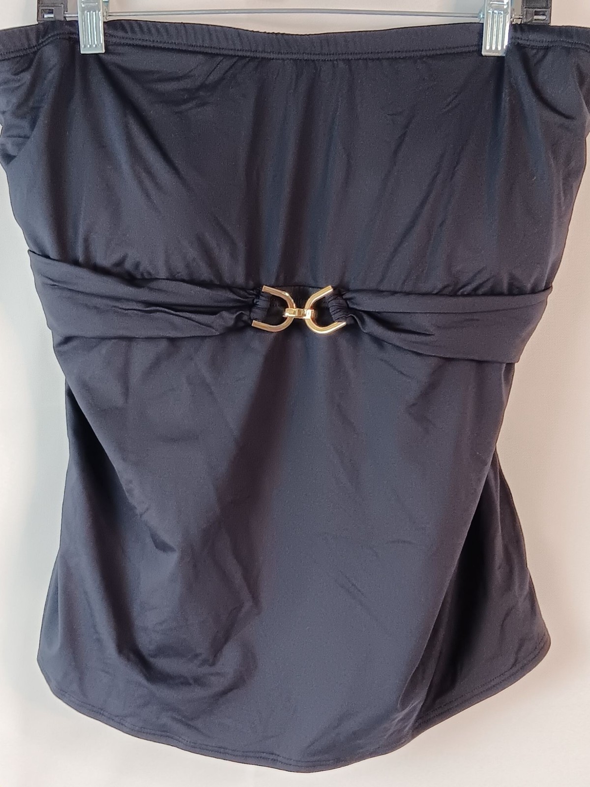 Michael Kors Black Strapless Bandeau Gold Buckle Tankini Swim Top Size 22W
