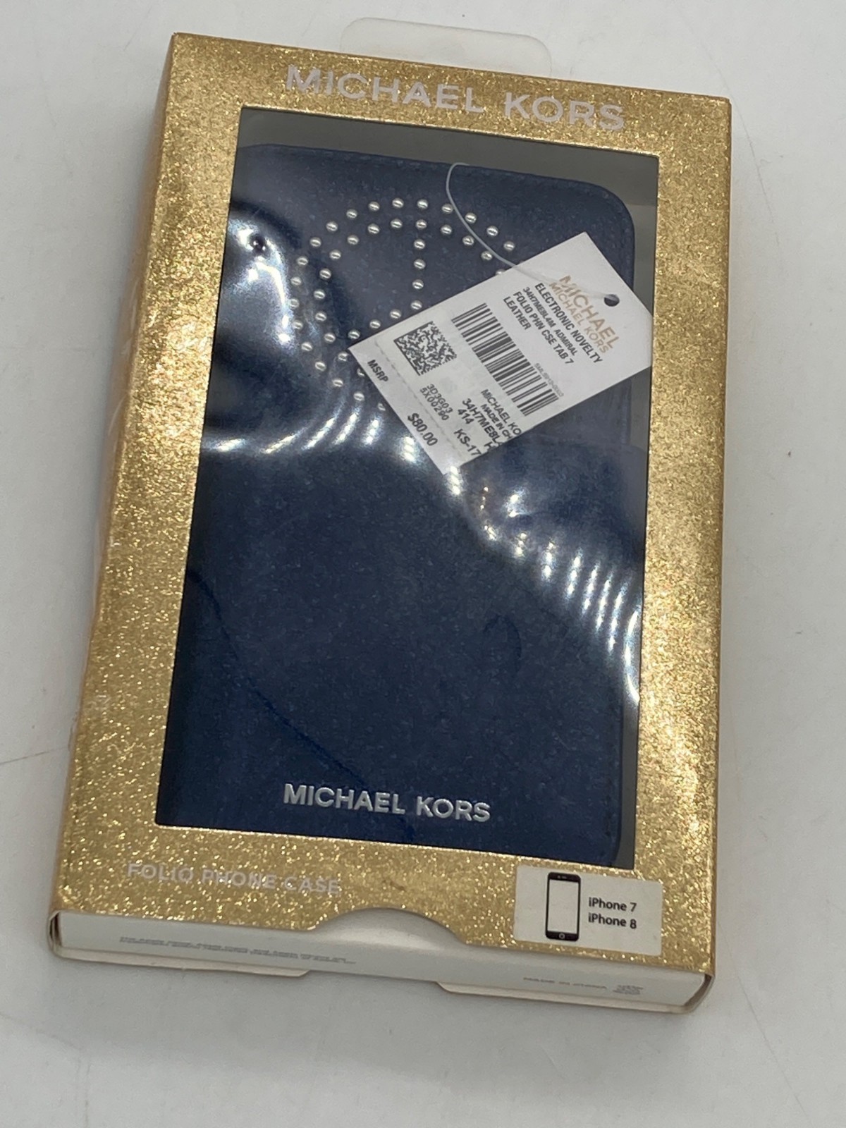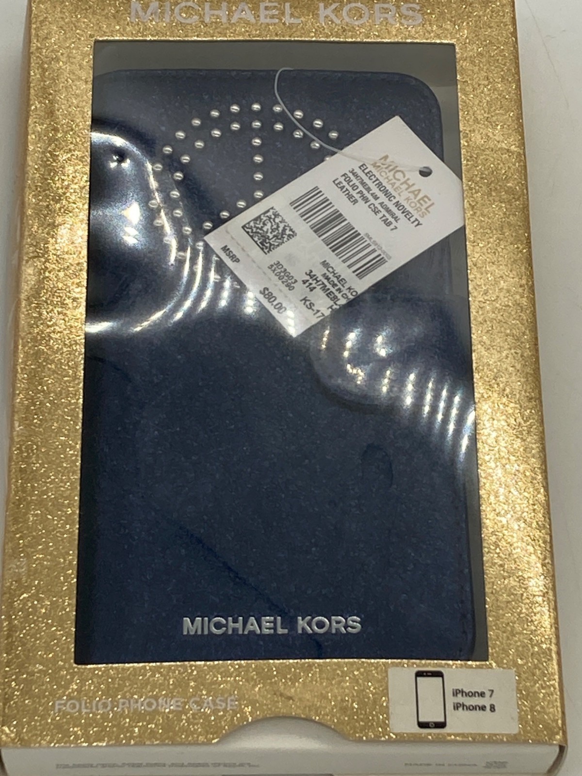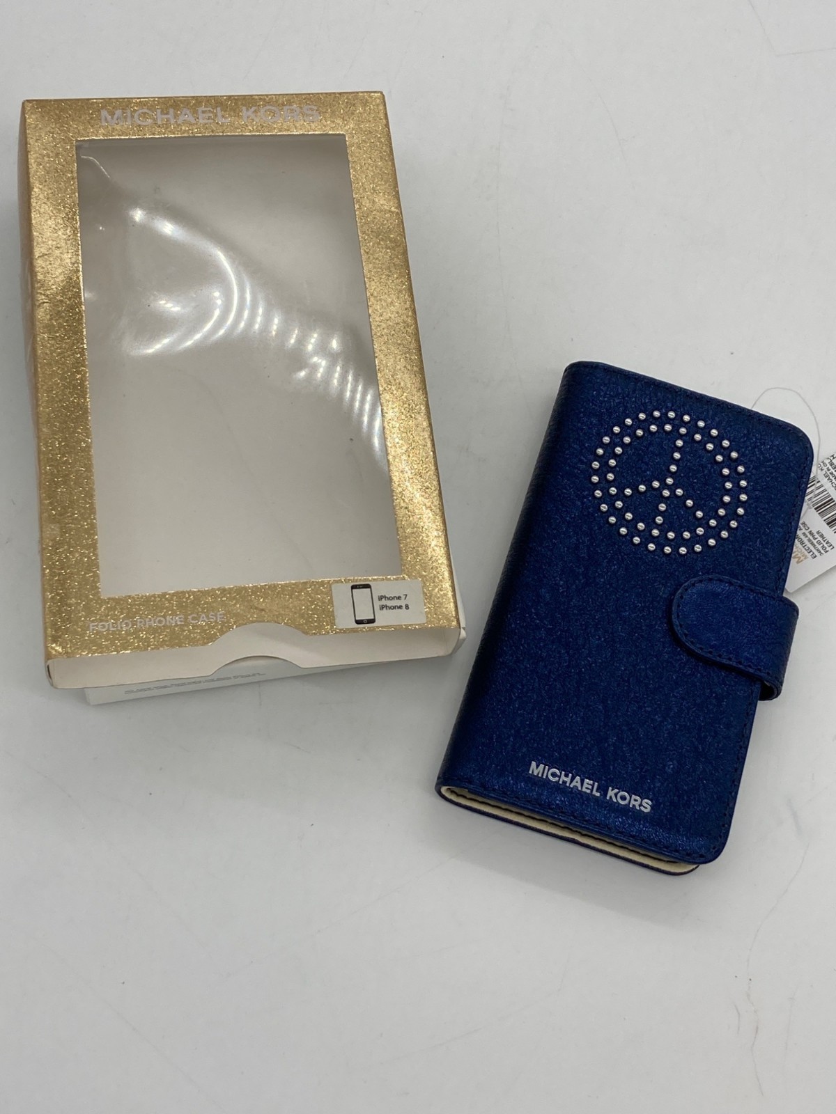 Michael Kors iPhone 7/8 Folio Case Navy Blue With Peace Studs