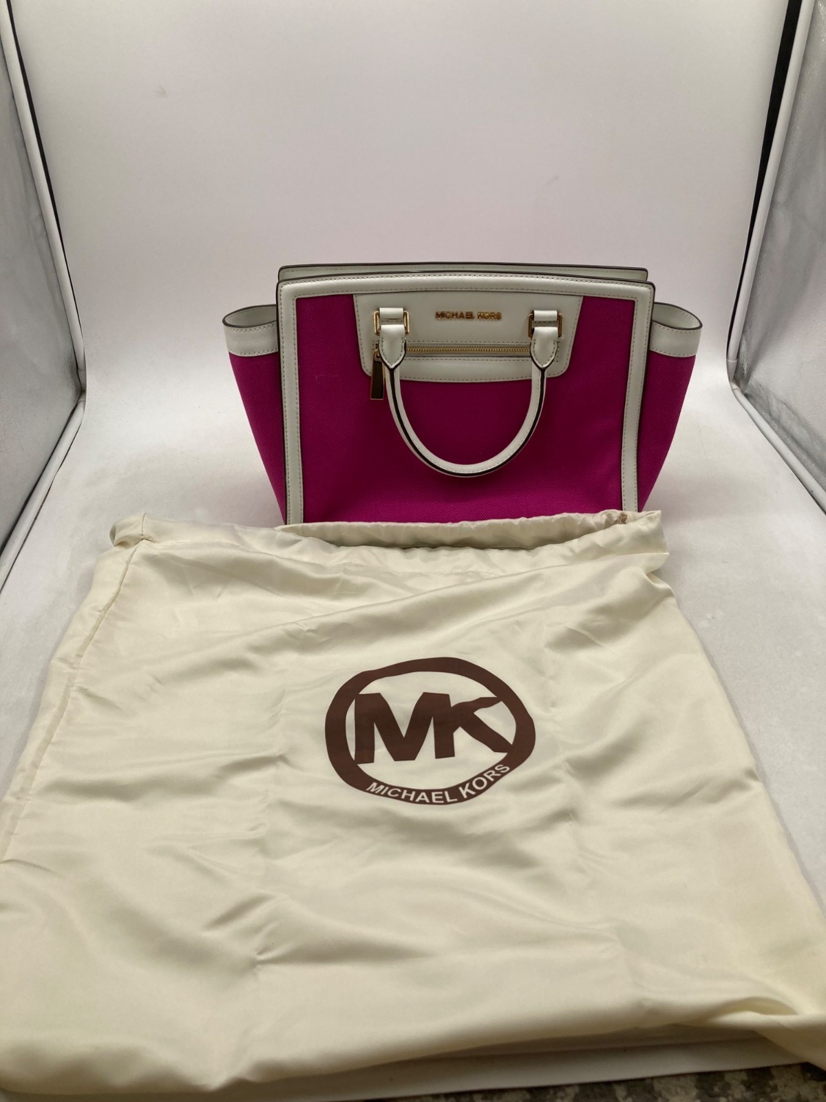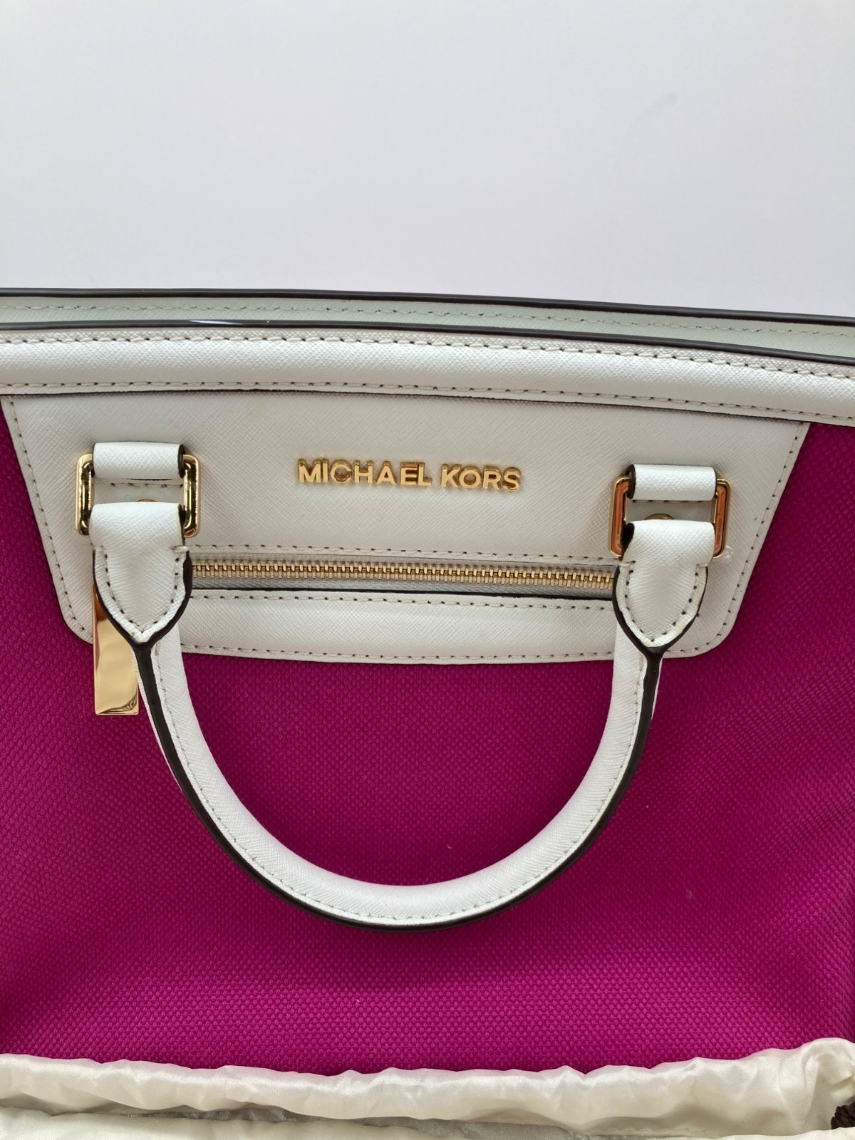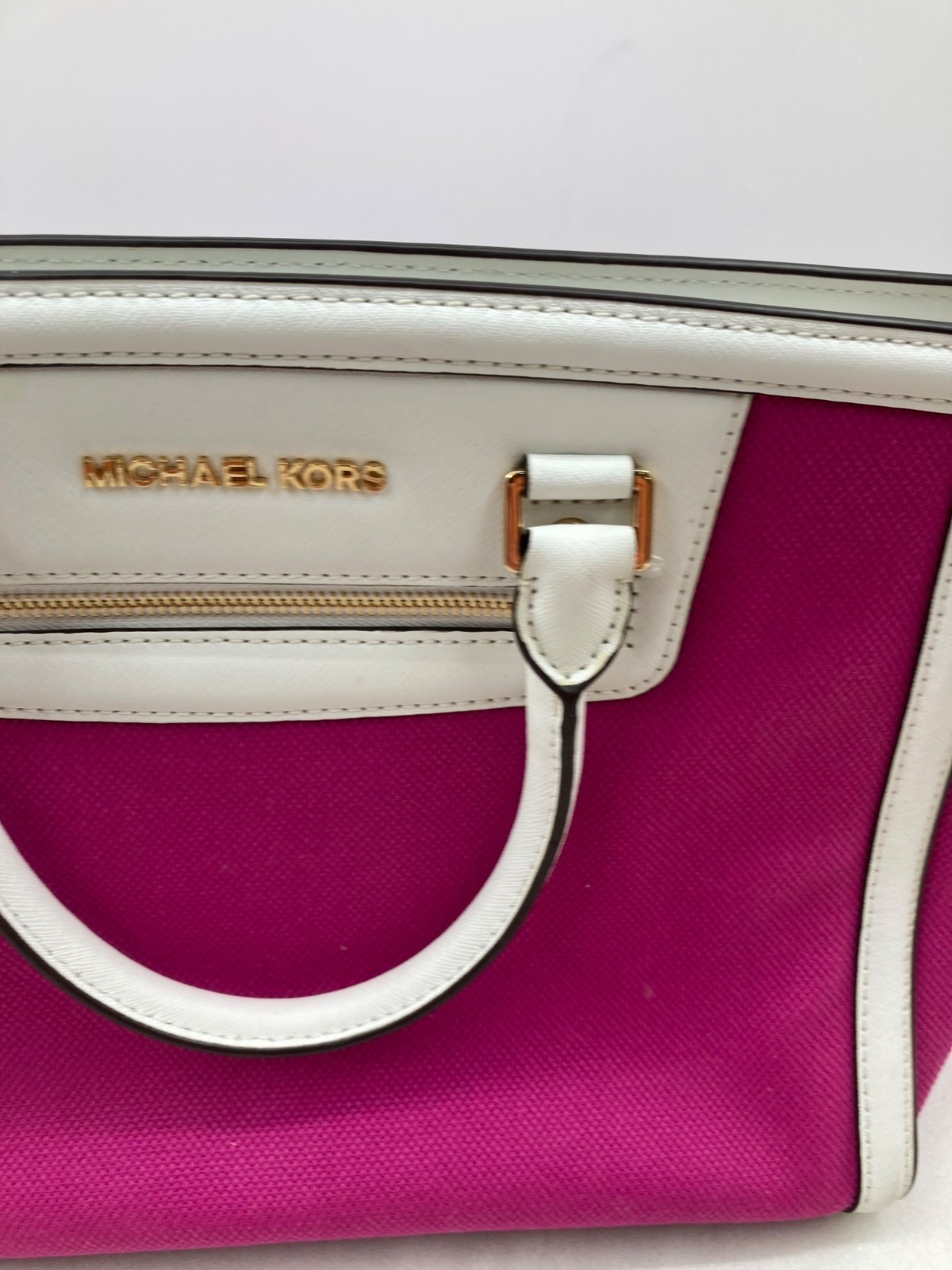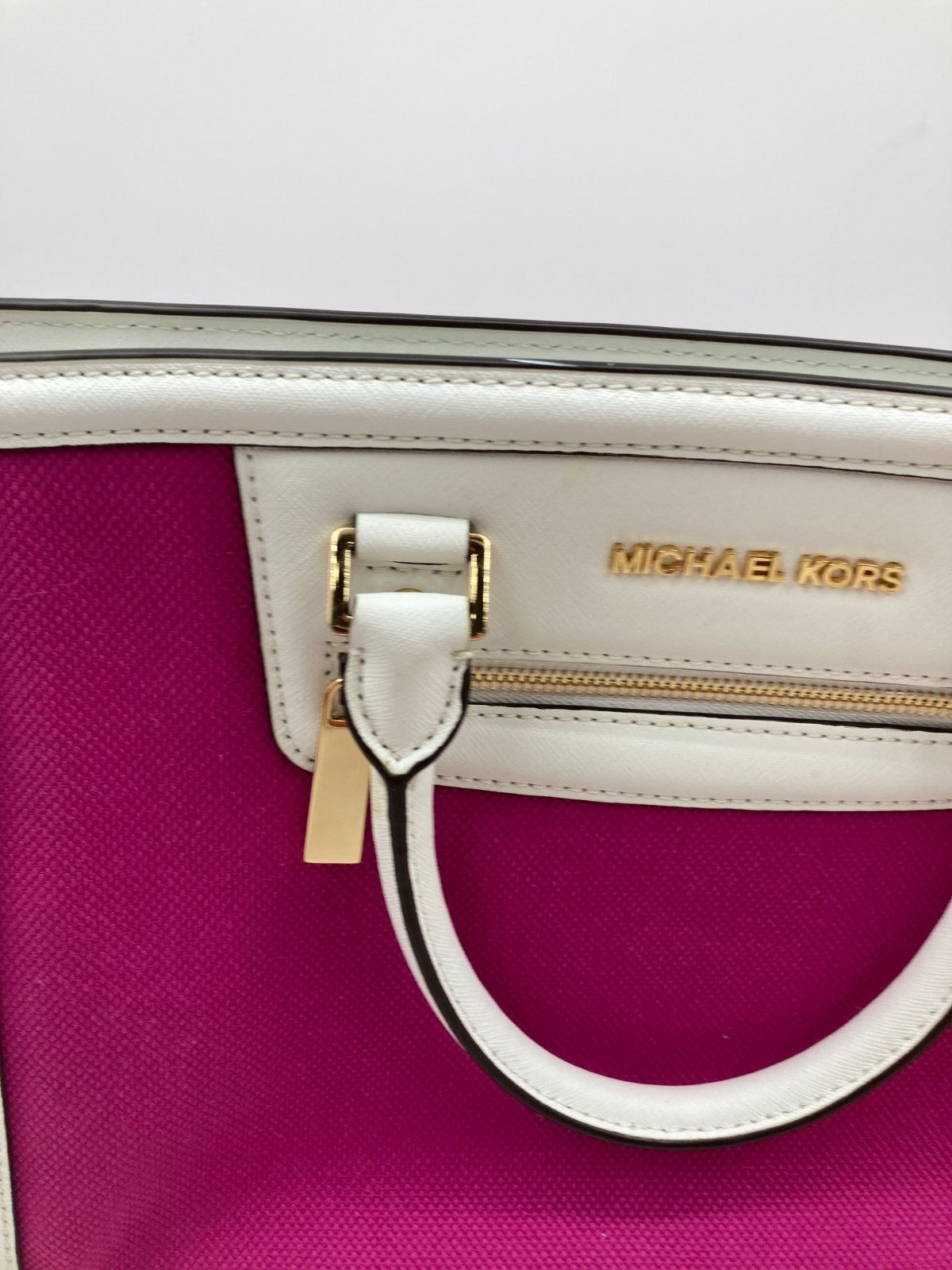 MICHAEL KORS SELMA FUSCHIA PINK CANVAS SATCHEL