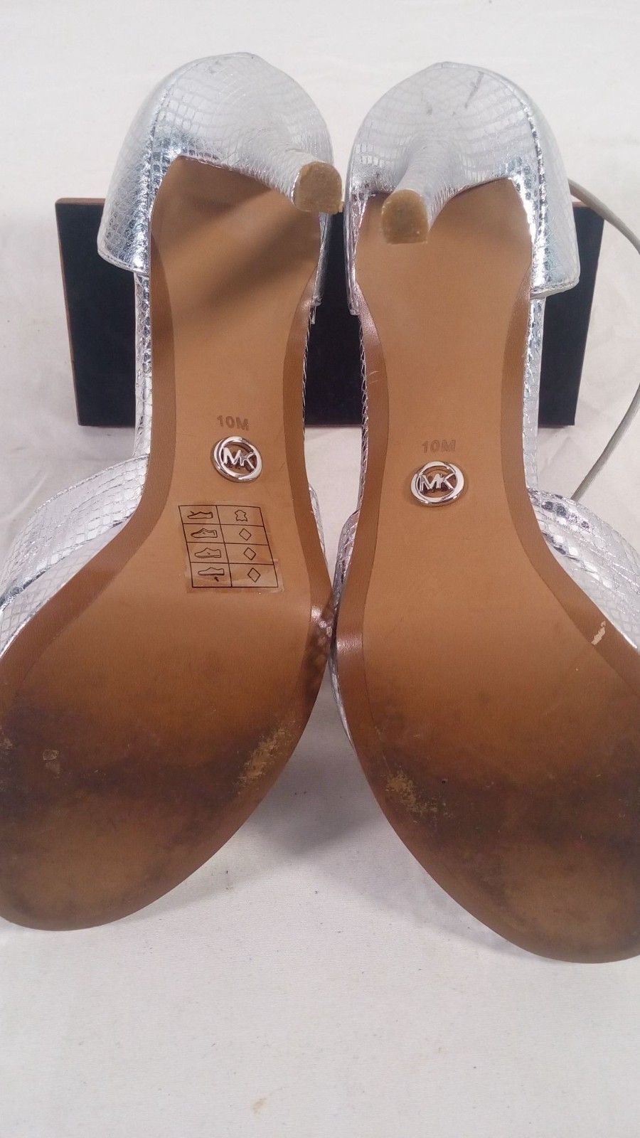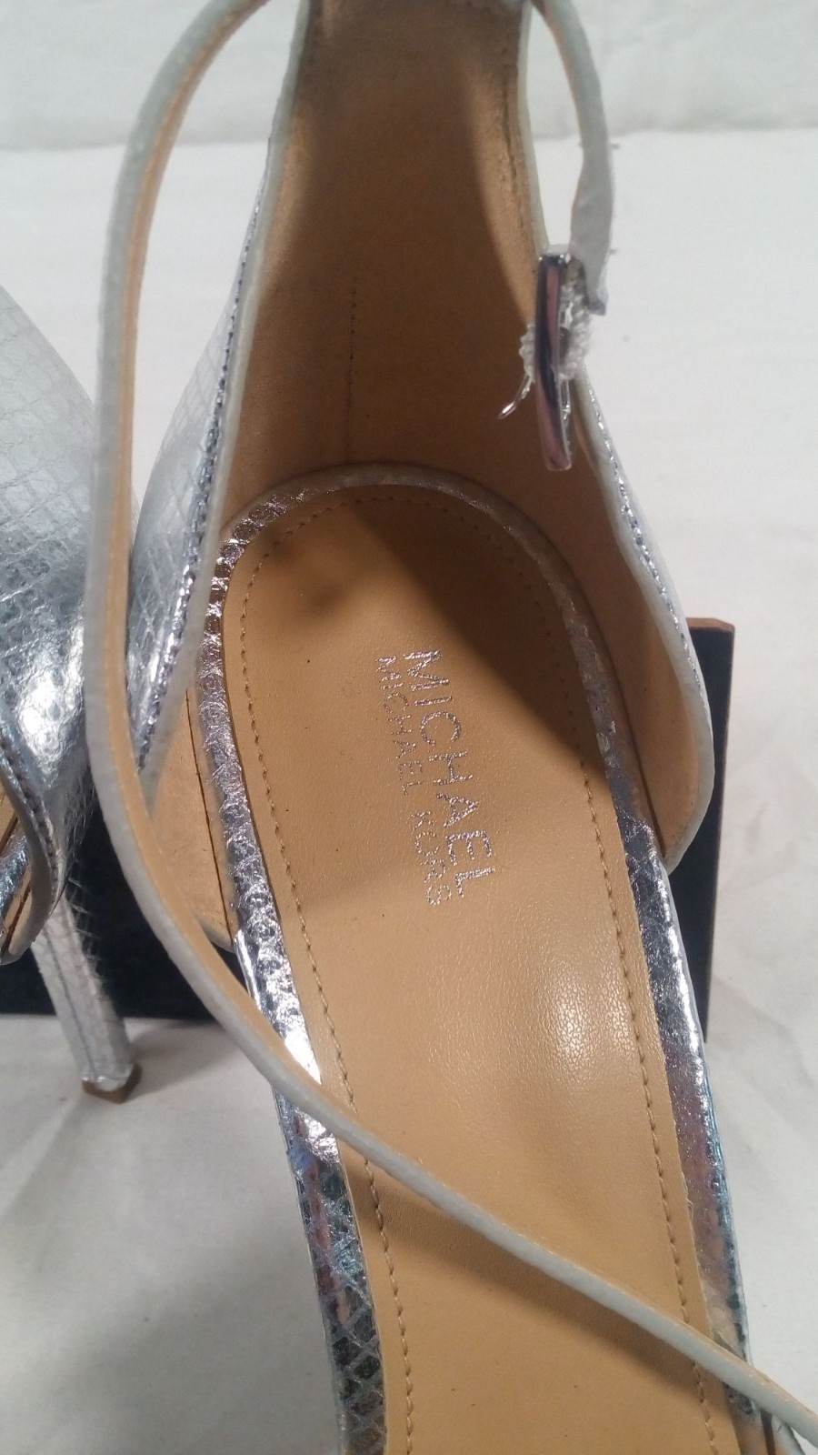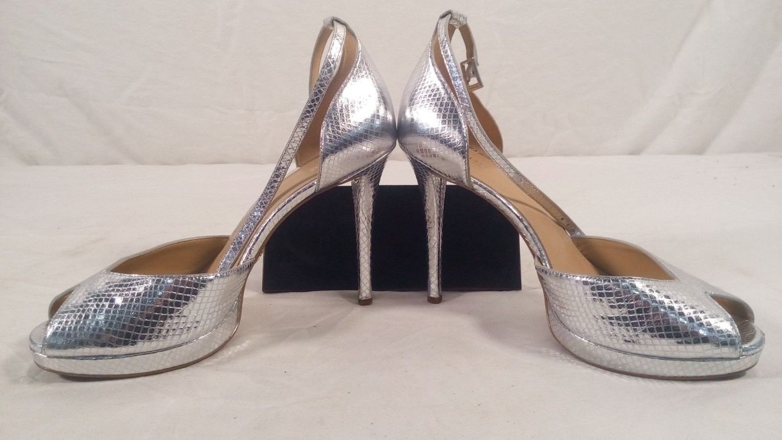 Michael Kors Silver Snakeskin Peep Toe Platform Heels Size 10M