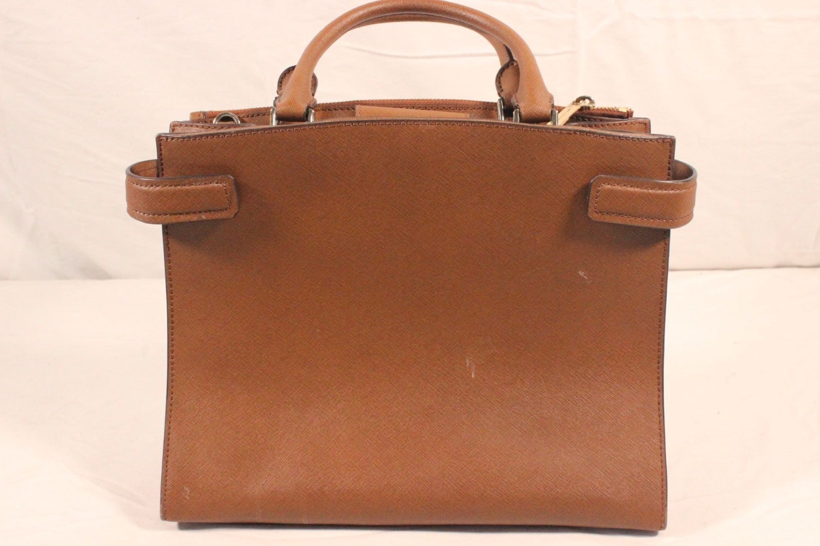 Michael Kors Tan Leather Satchel Tote Bag With Gold-Tone Hardware & Top Handles