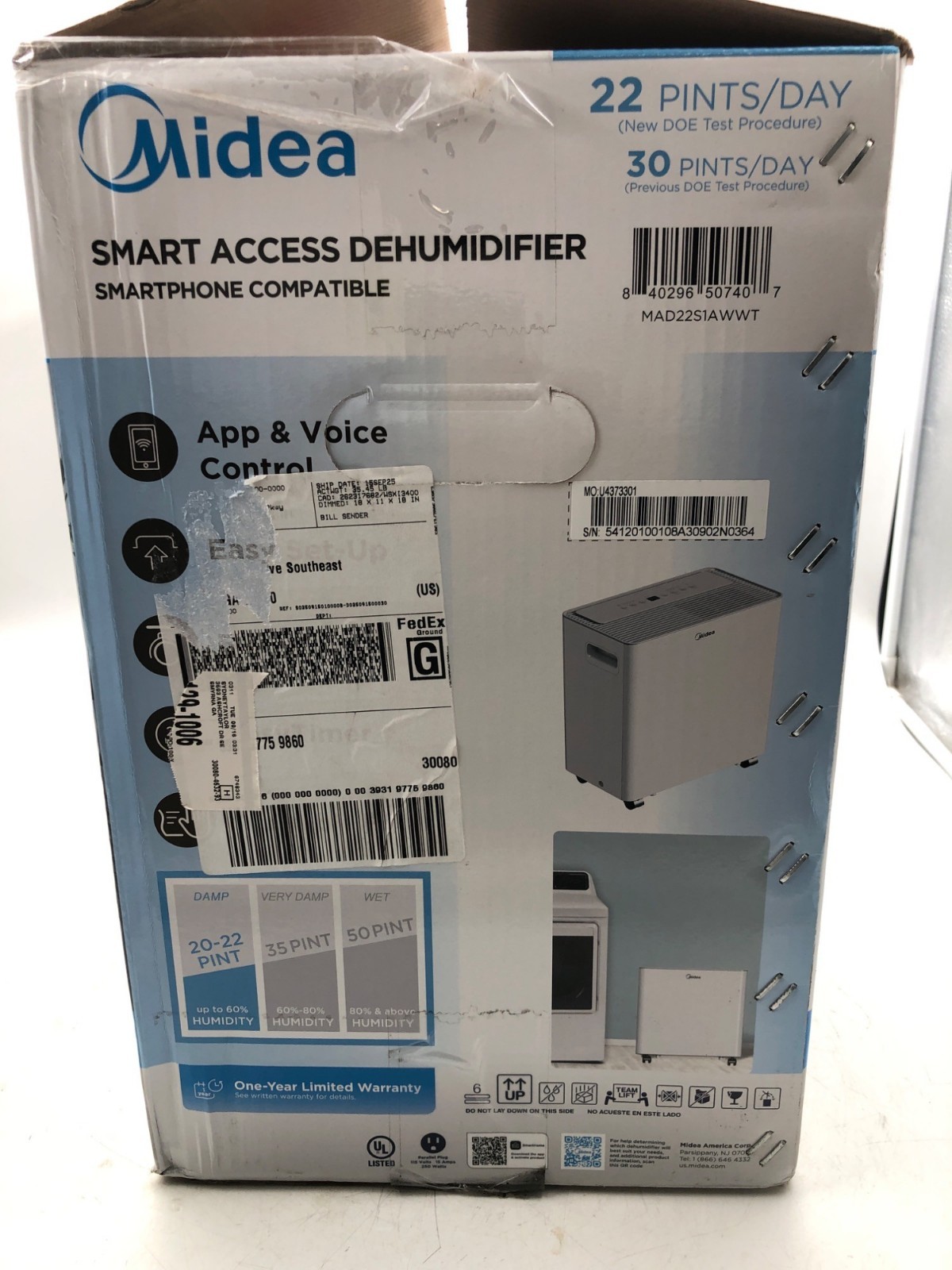 Midea 22 Pt. Smart Dehumidifier, App & Voice Control- Open Box