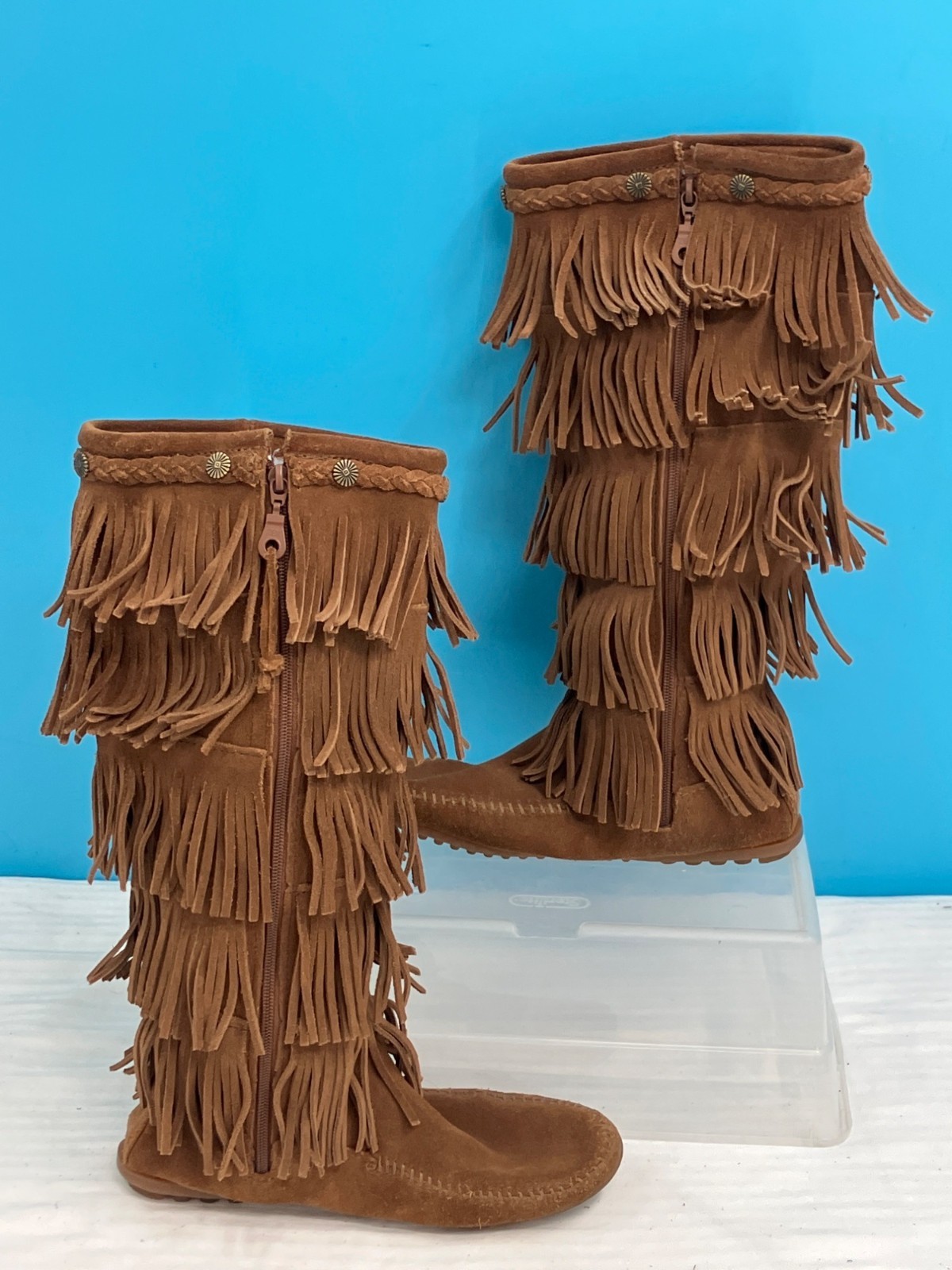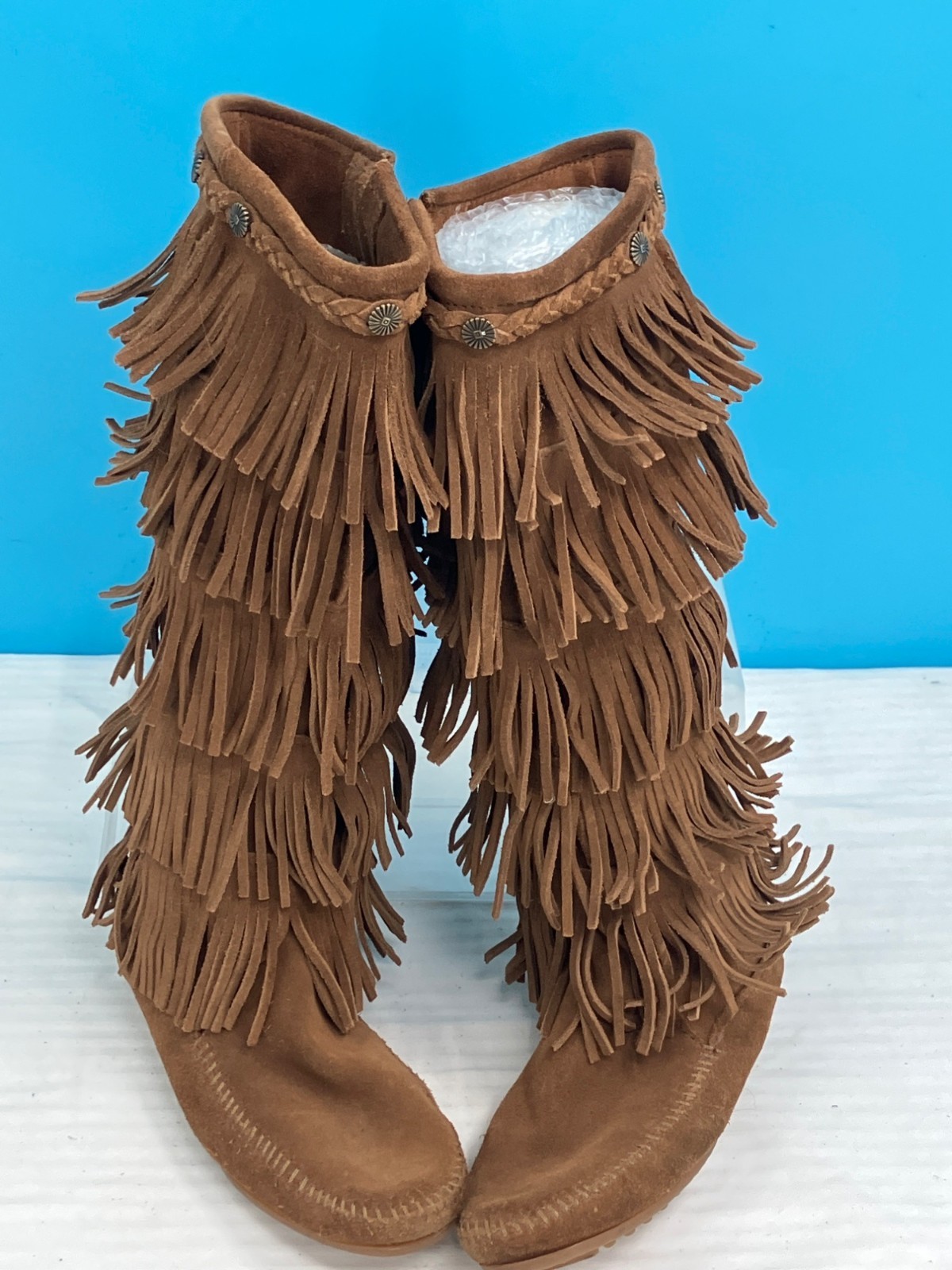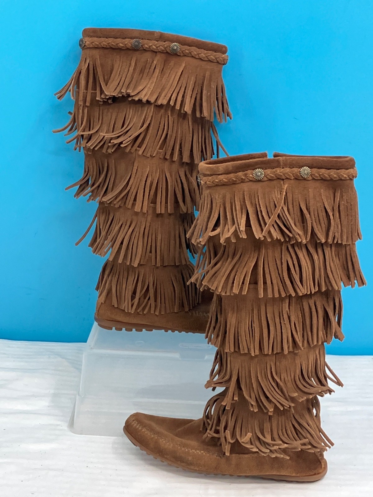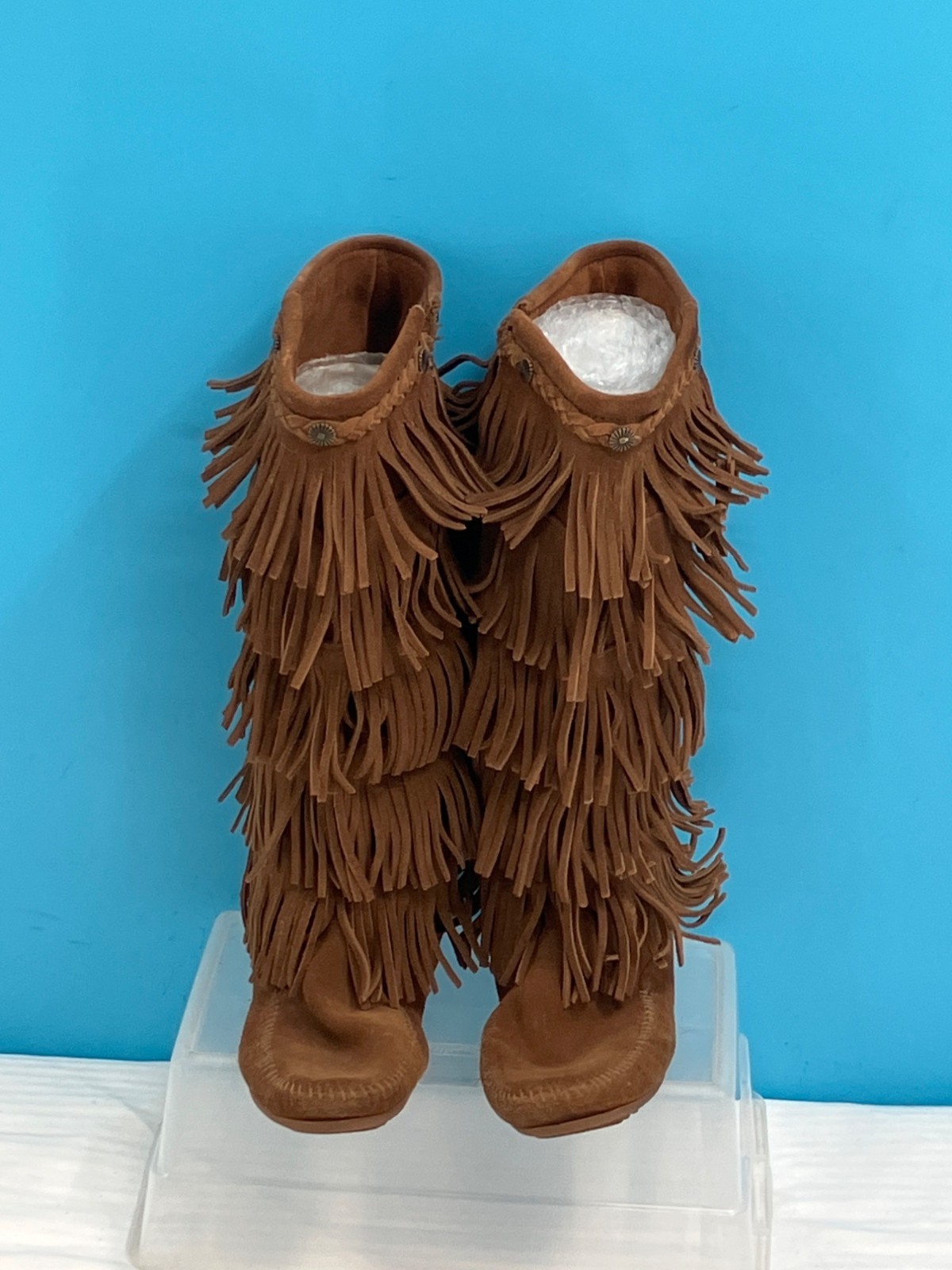 Minnetonka 1658 Brown 5-Layer Fringe Moccasin Boots (size 8)