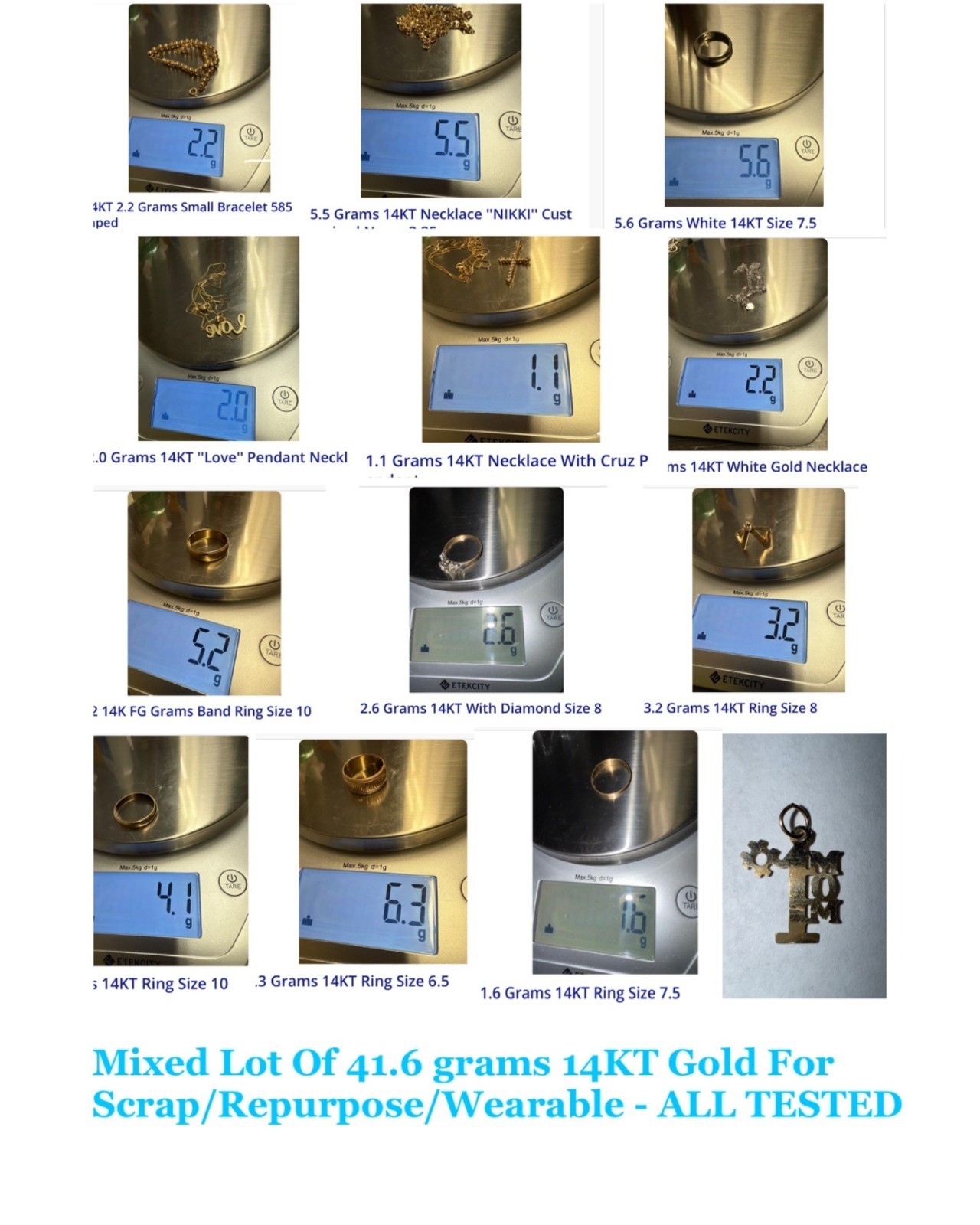 Mixed Lot 41.6g 14KT Gold Jewelry Rings Necklaces Bracelet Wearable/Scrap-Tested