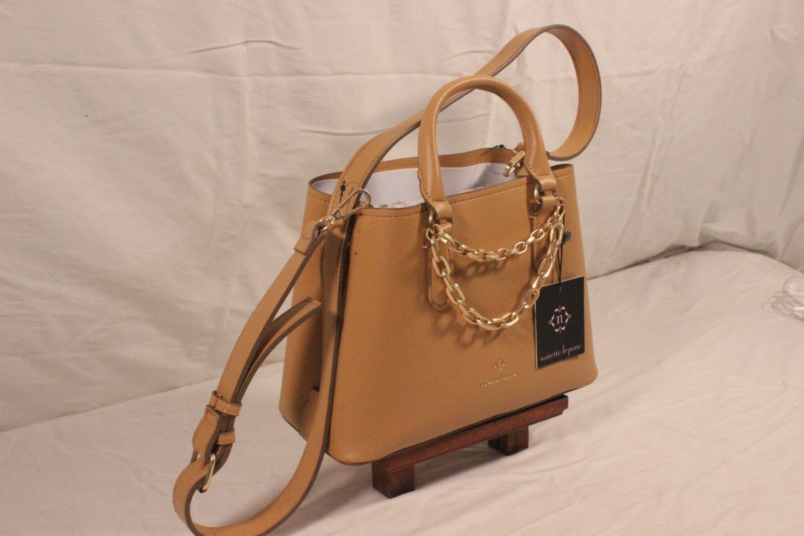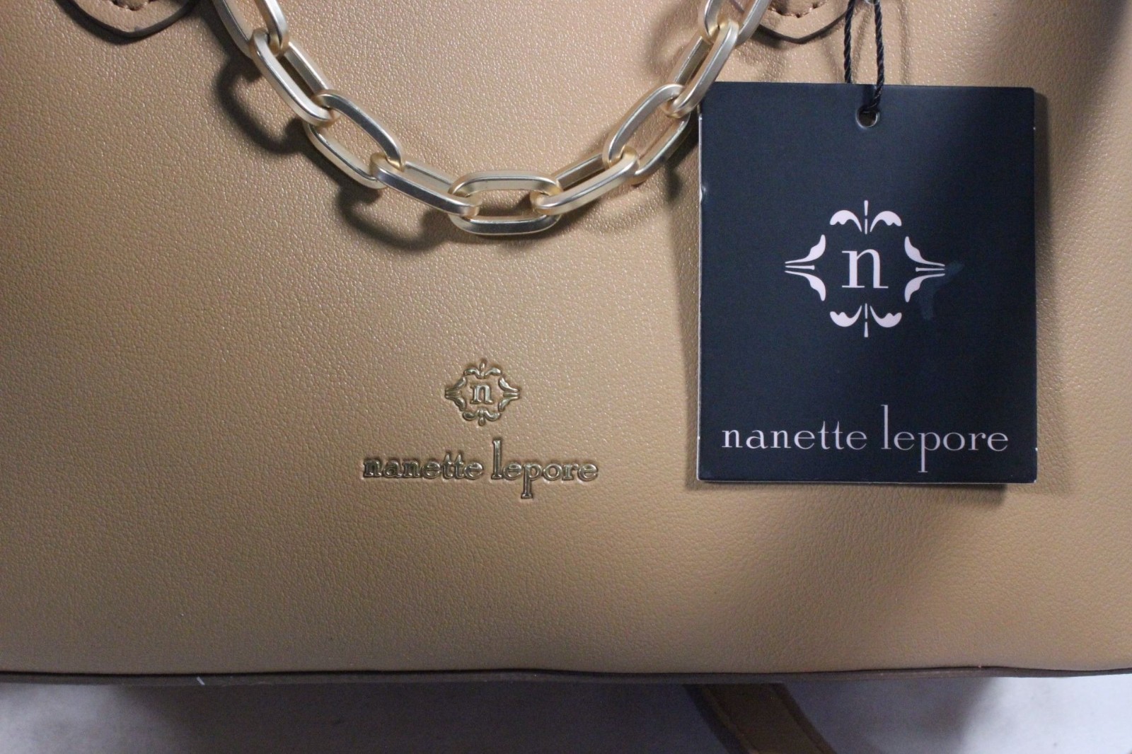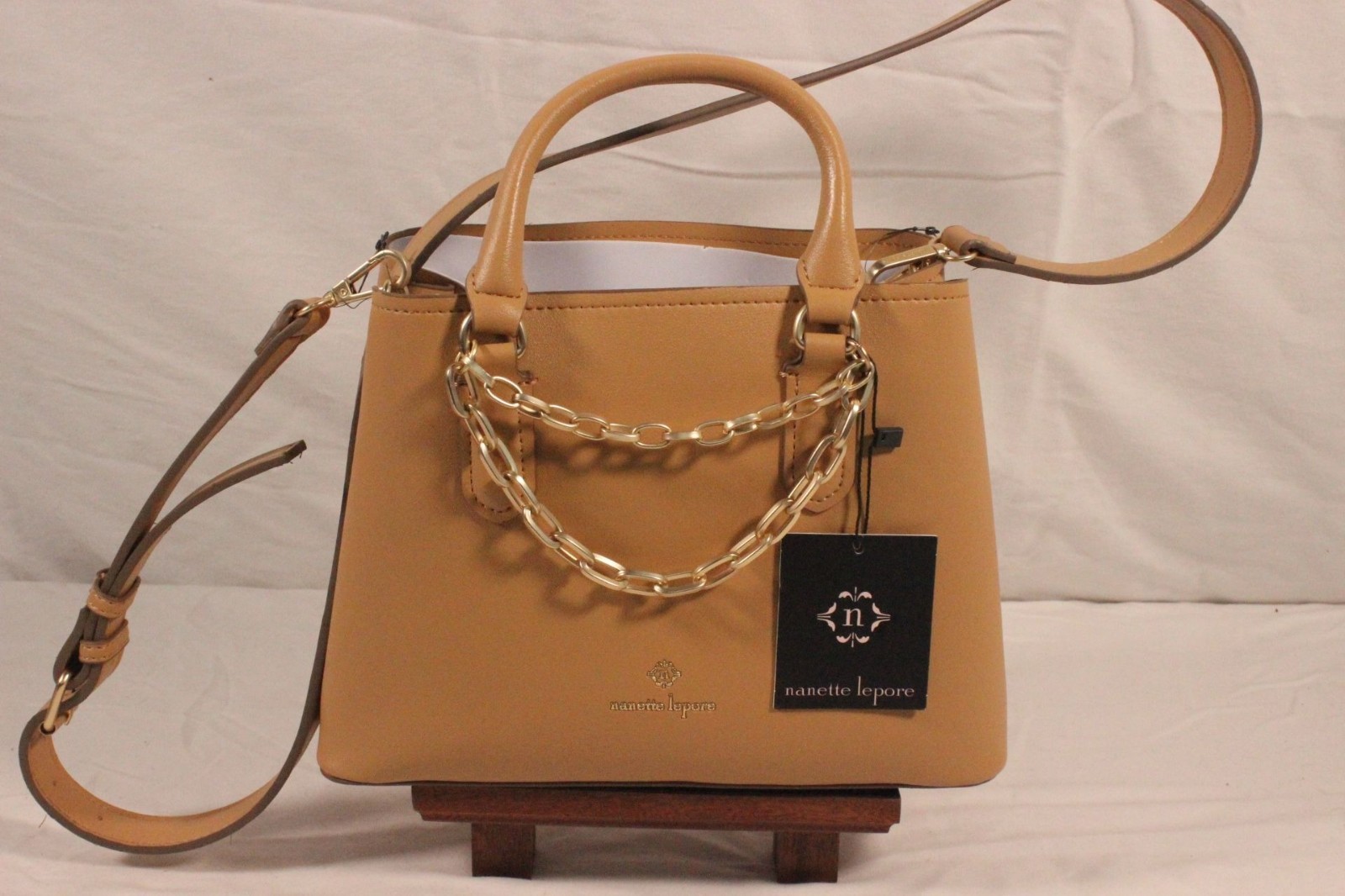 Nanette Lepore Camel Tan Faux Leather Tote With Gold Chain Accent & Adjustable C