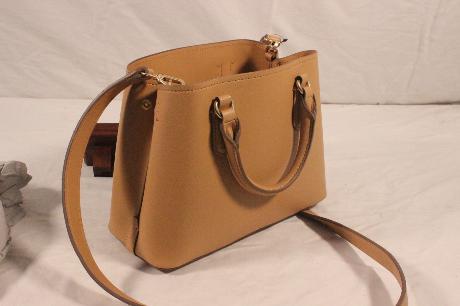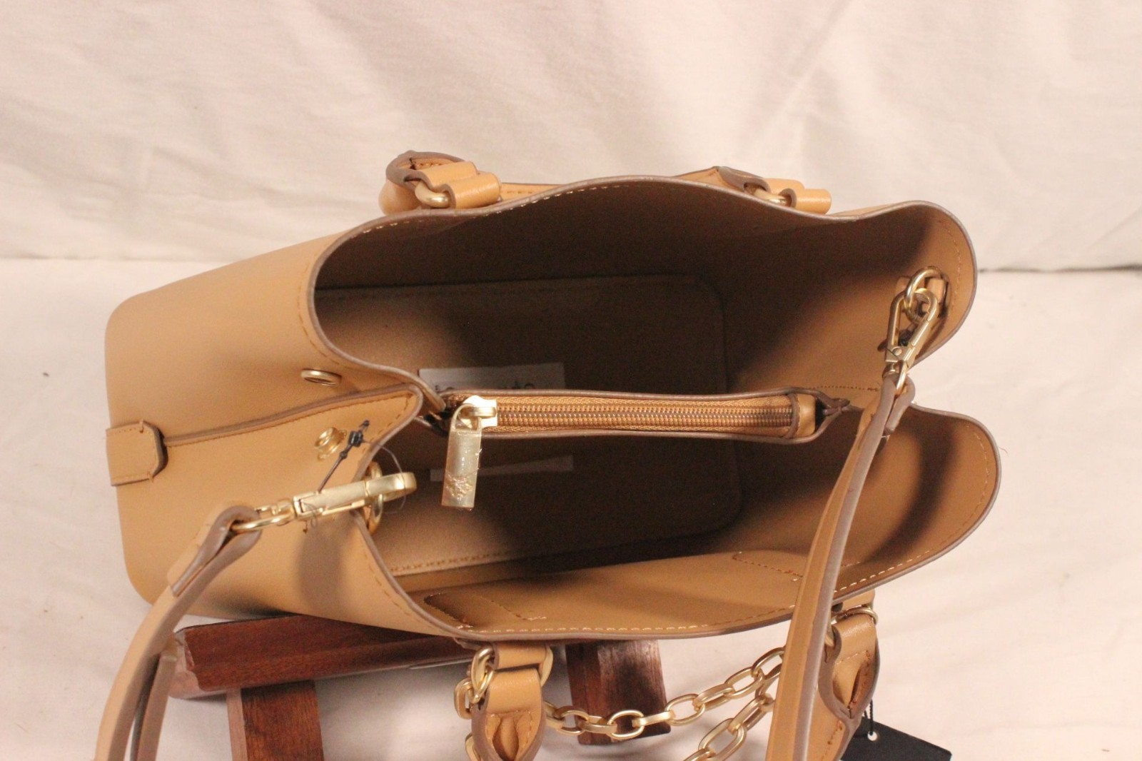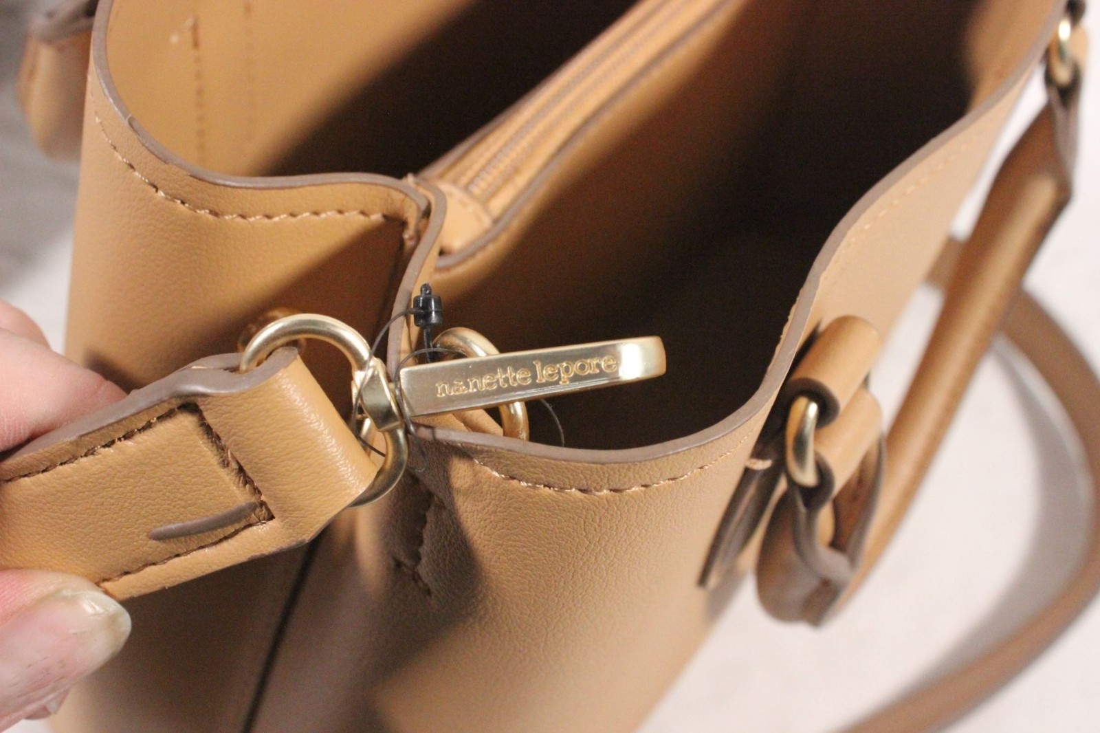Nanette Lepore Camel Tan Faux Leather Tote With Gold Chain Accent & Adjustable C