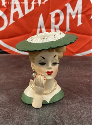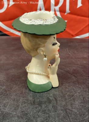 Napco 1962 Multicolor Decorative Lady Head Vase (Missing An Earring)