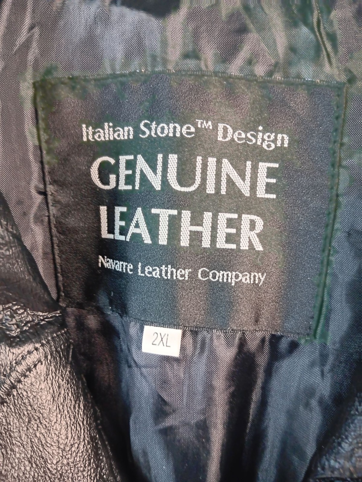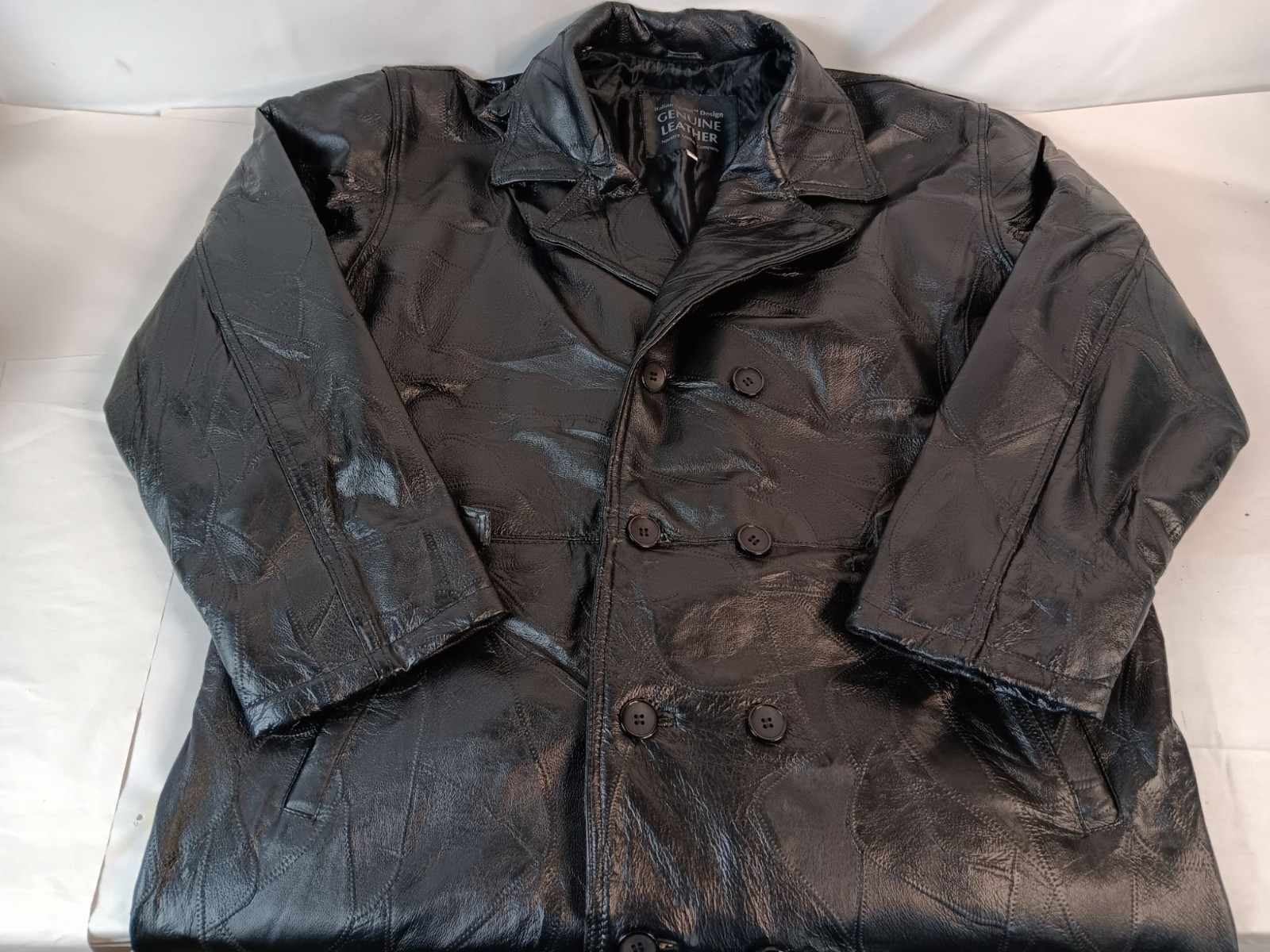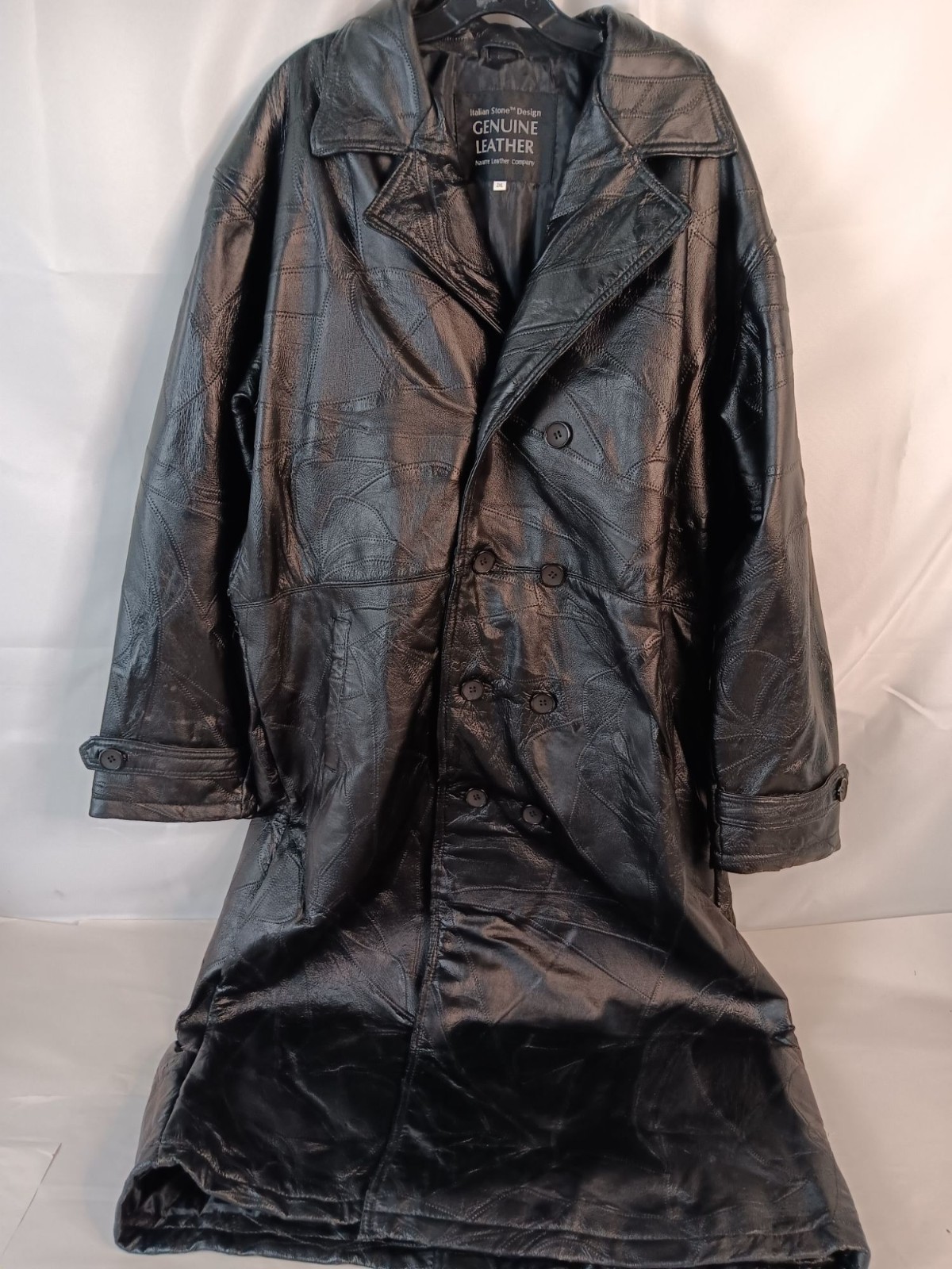 Navarre Leather Co. Genuine Leather Black Trench Coat 2XL Italian Stone Design