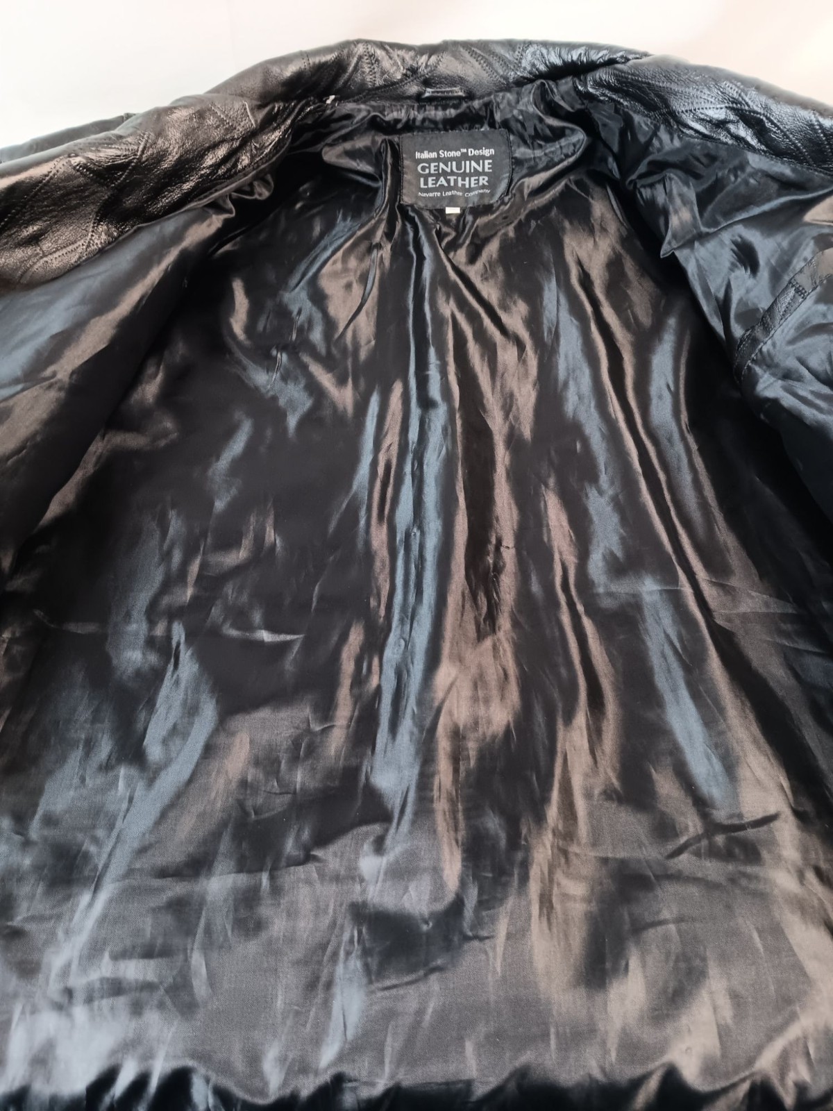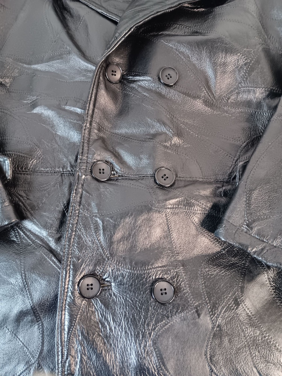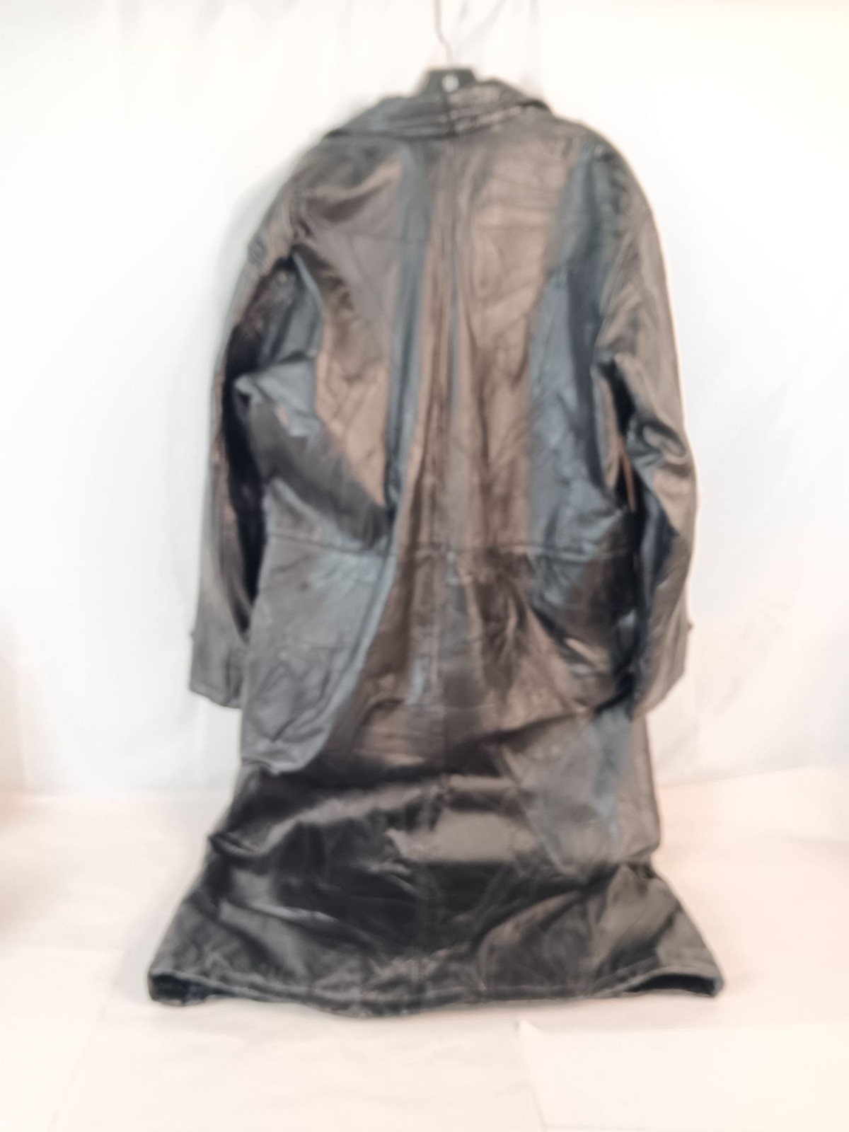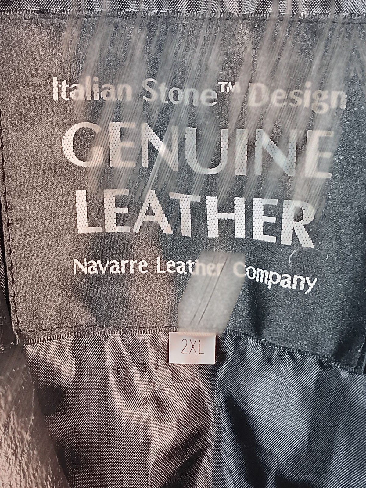 Navarre Leather Co. Genuine Leather Black Trench Coat 2XL Italian Stone Design