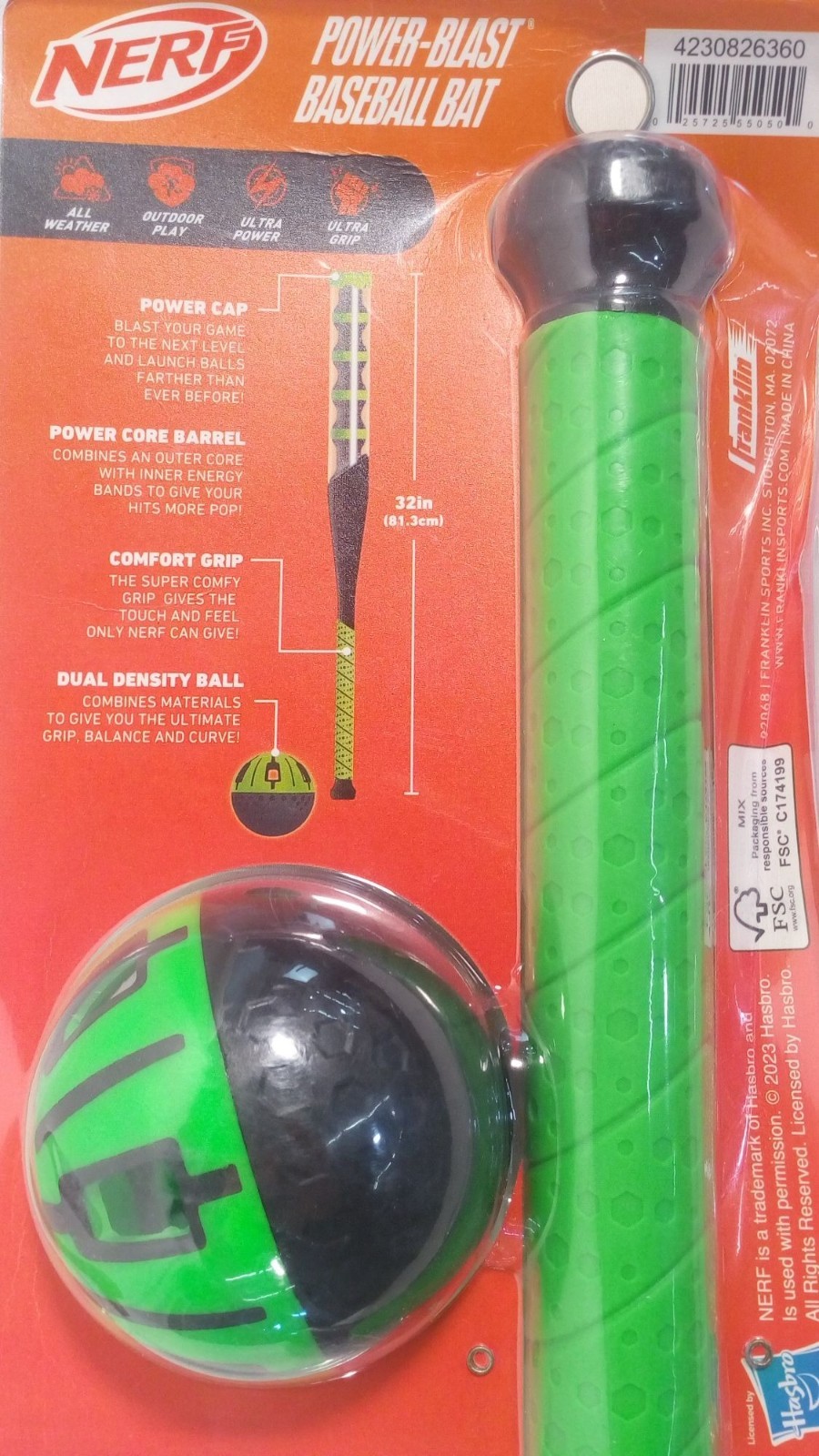 Nerf Power-Blast Baseball Bat & Ball Set 32" All Weather Outdoor Play
