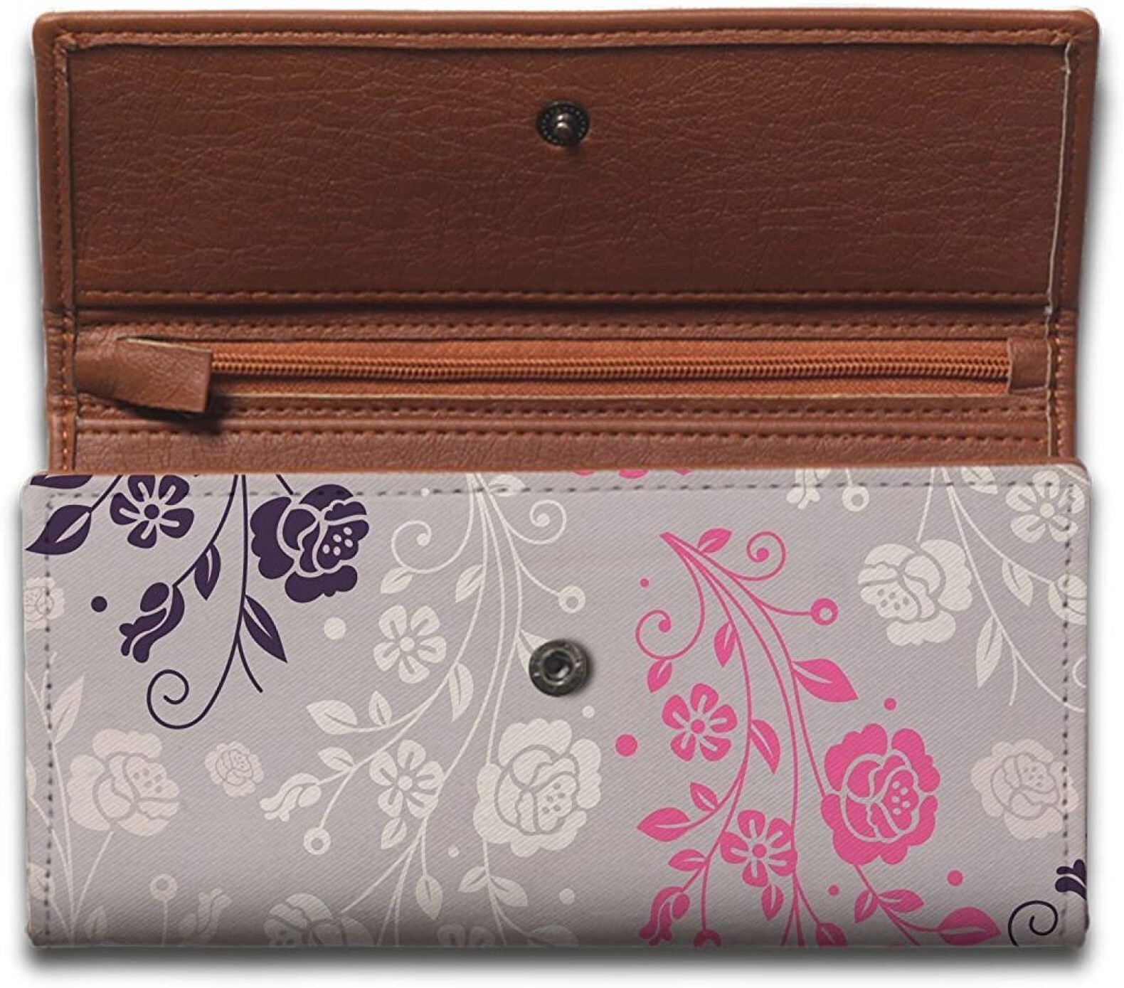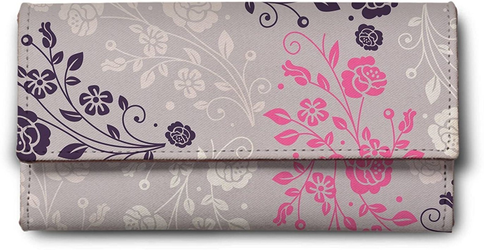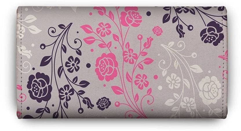New Grey Color Flower Multicolor Faux Leather Printed Women's Wallet Clutch