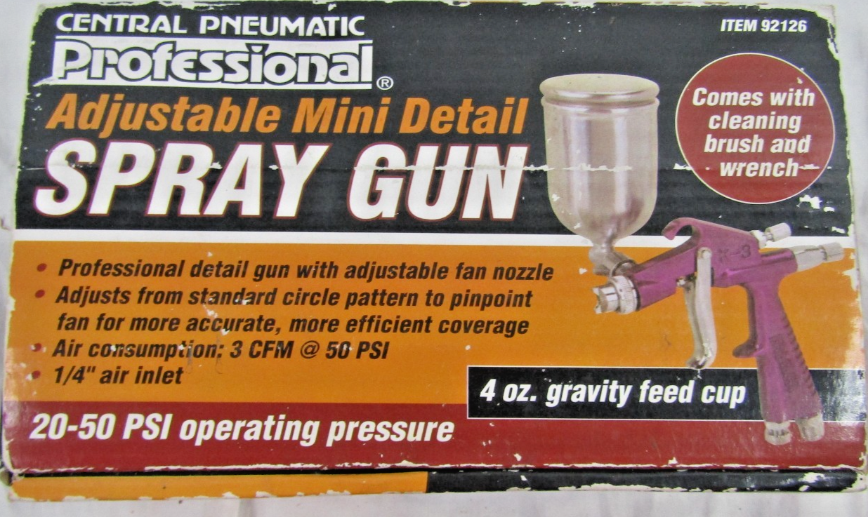 New In Open Box Central Pneumatic 4oz Adjustable Mini Detail Spray Gun