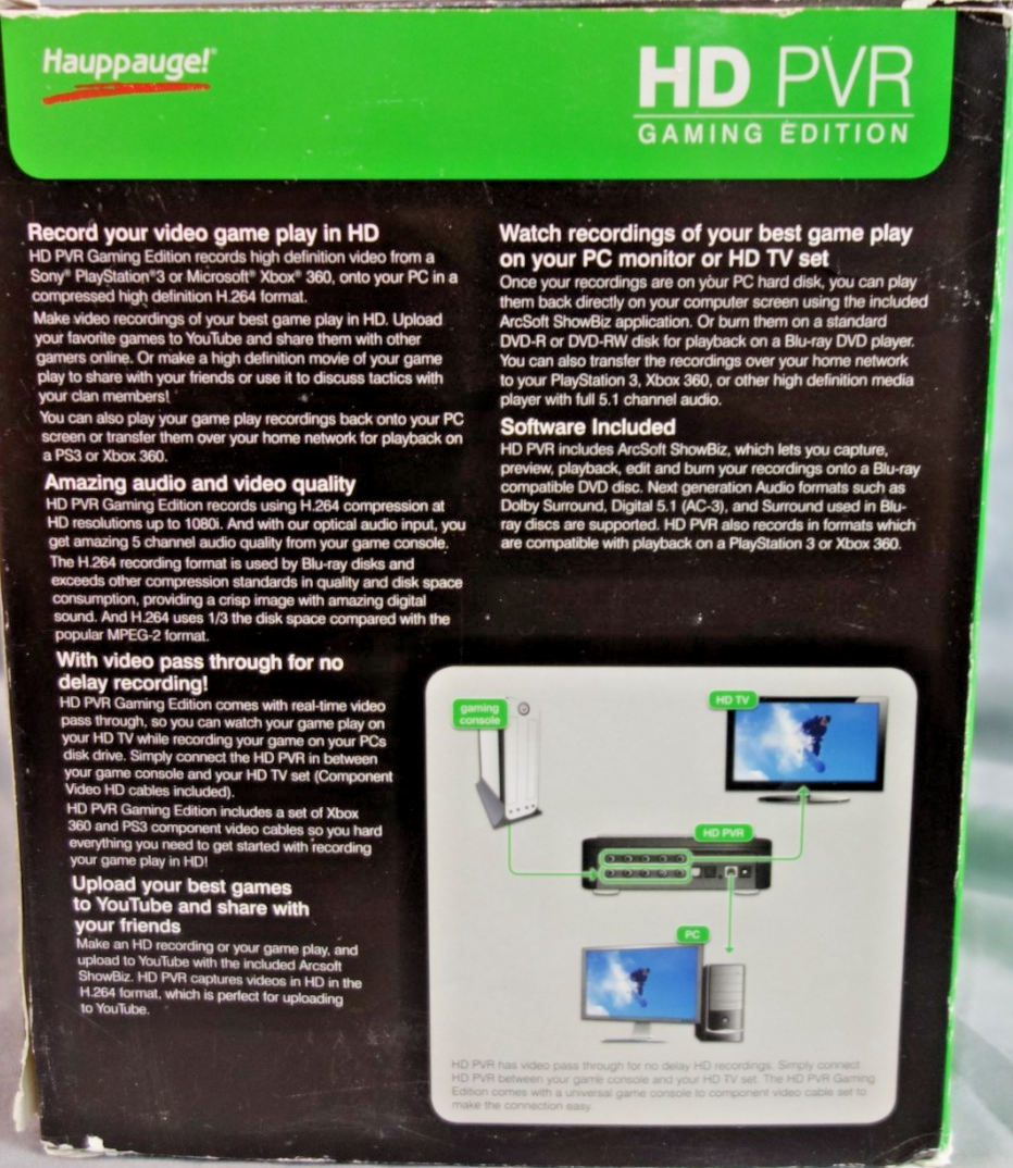 New In Open Box Hauppauge HD PVR Gaming Edition Model 1445
