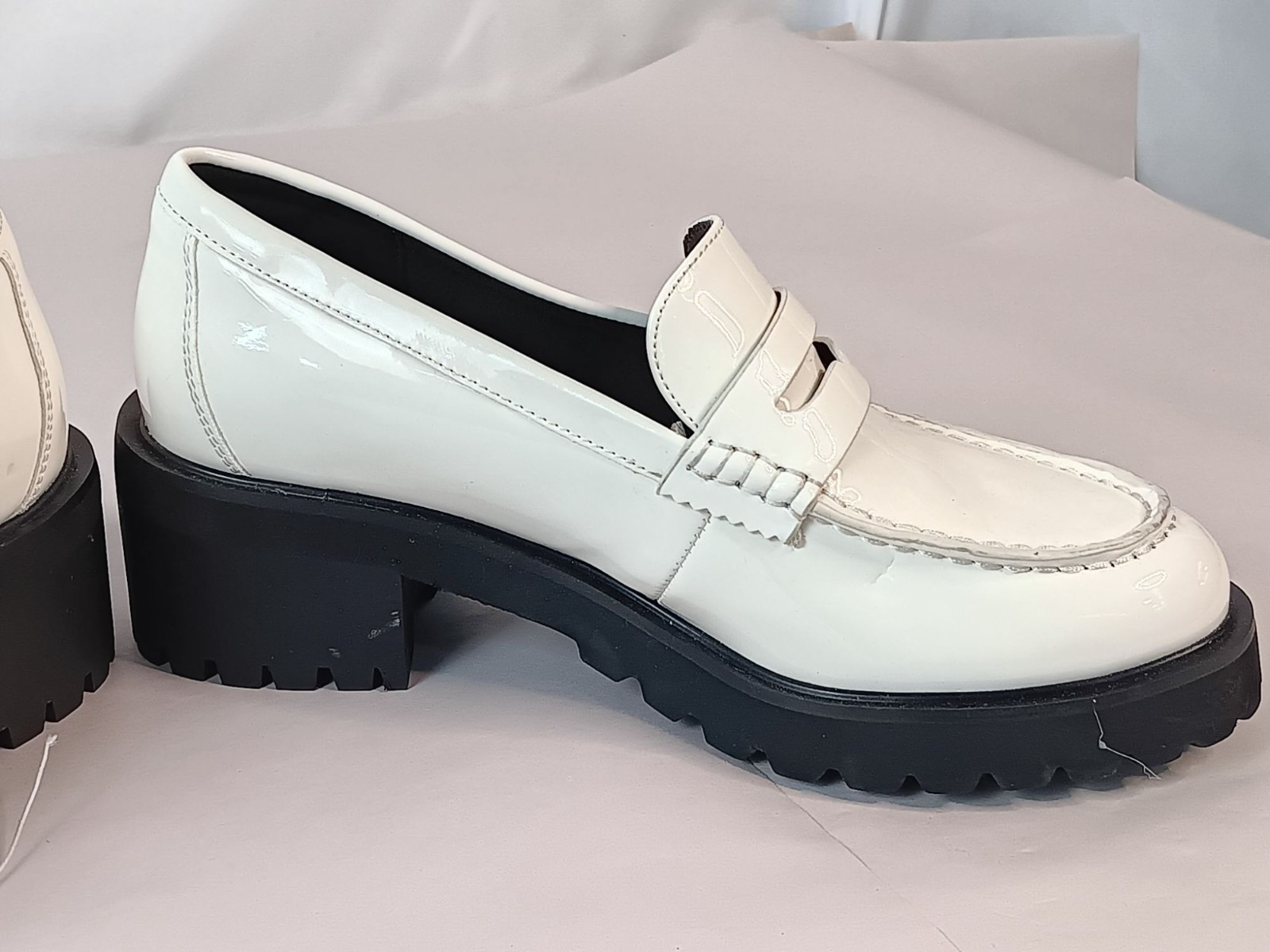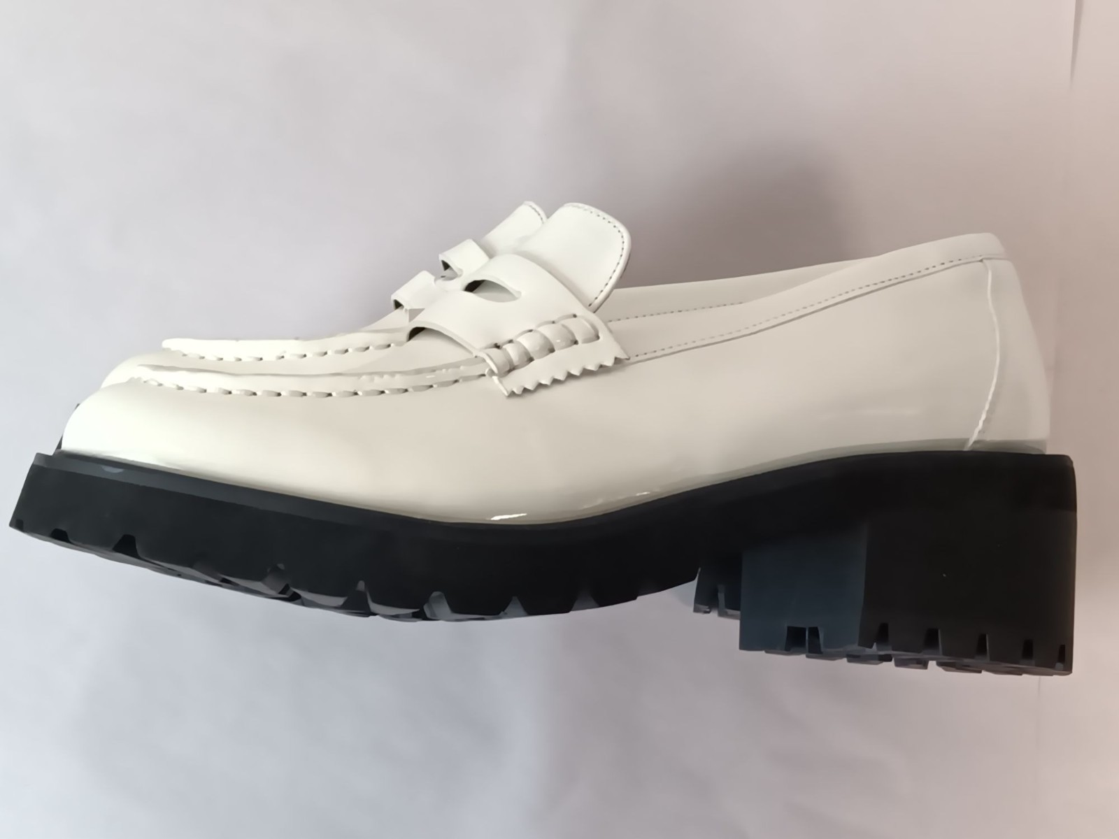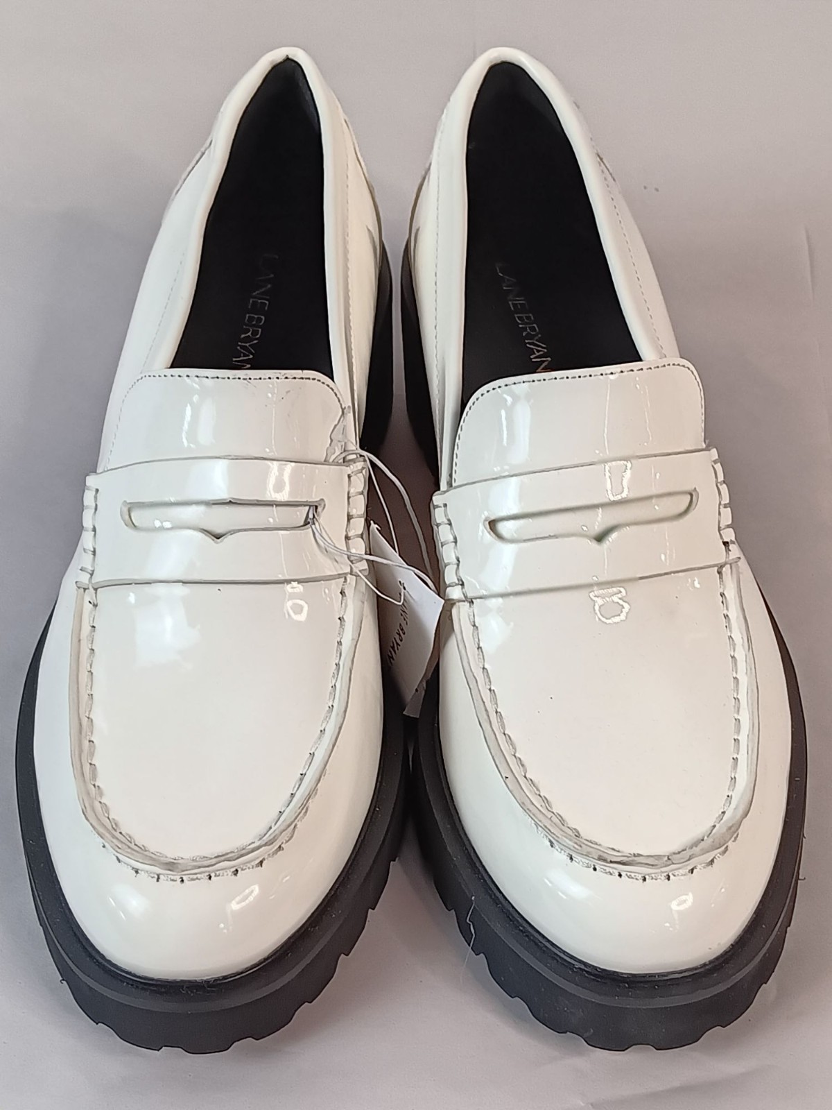 NEW Lane Bryant White PU Platform Leather Lug Heel Loafers Size 9W
