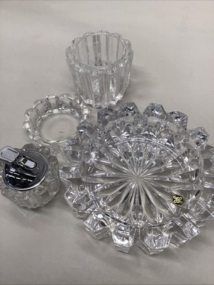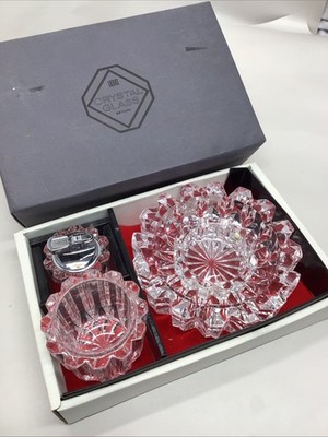 New Open CIB Hoya Crystal Glass 4 Piece Ashtray Set NWS4811