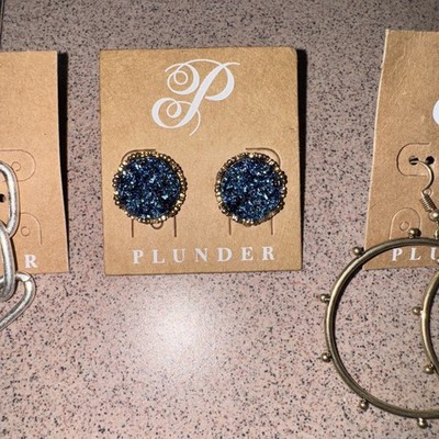 New Plunder Earrings Sets ,Lot Of 5 (silver, Blue, Gold Tones )