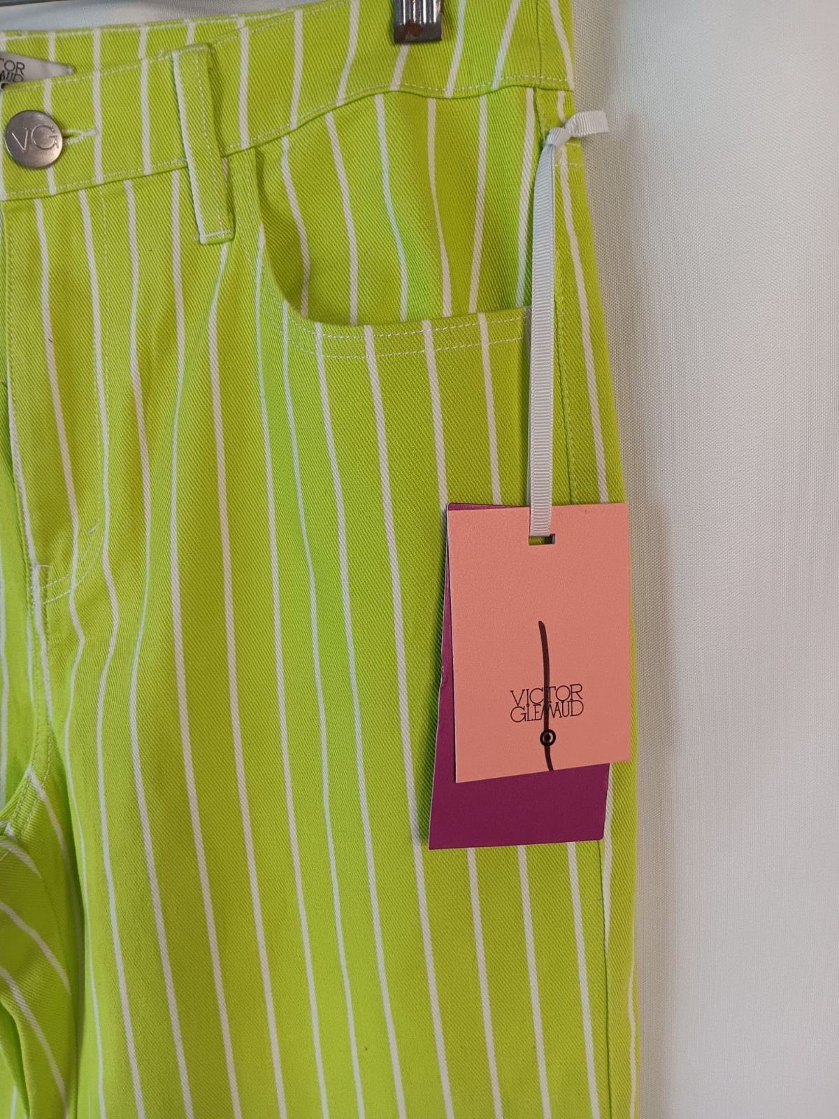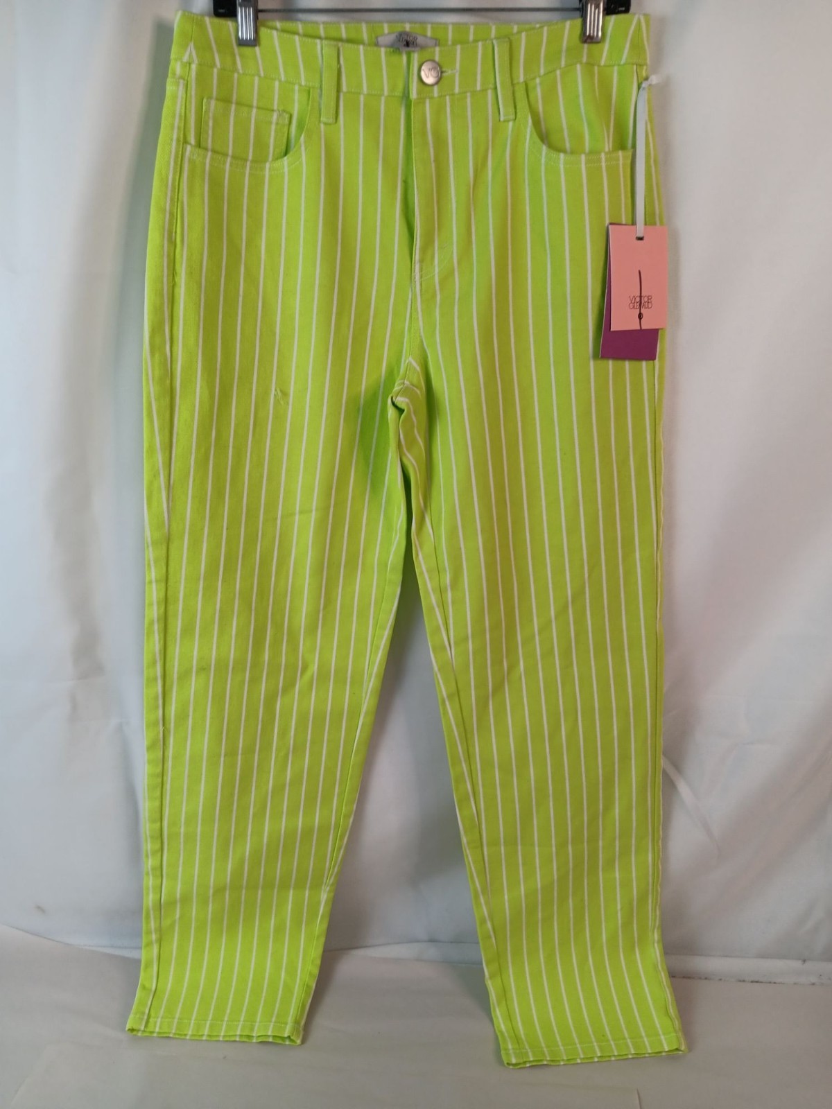 NEW! Victor Glemaud Lime Green & White Striped Pants With Tags