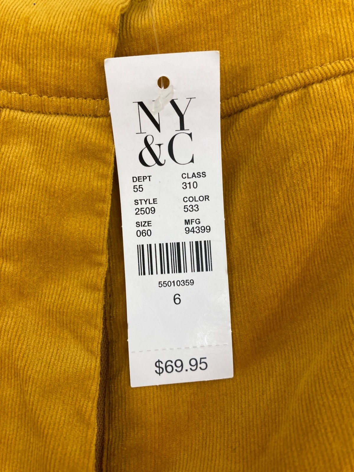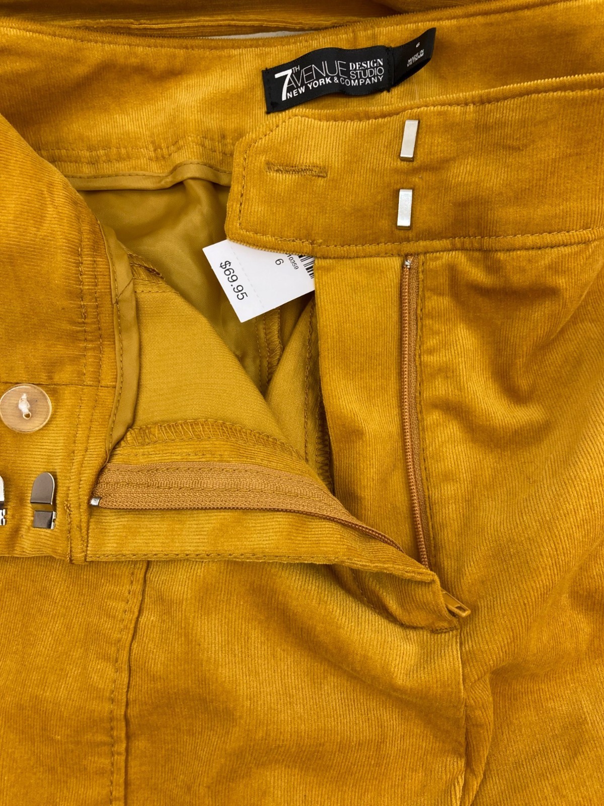 New York & Company 7TH Avenue Design Studio Yellow Corduroy Pants Size 6