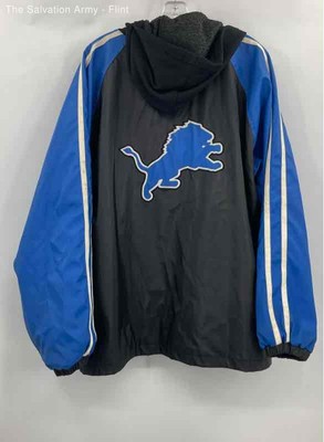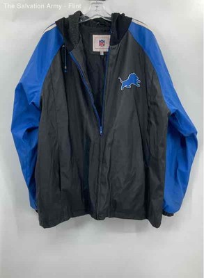 NFL Mens Black Blue Detroit Lions Football-NFL Full-Zip Puffer Jacket Size Large